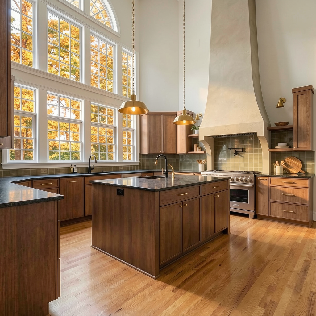 aerial architectural rendering of a contemporary lakehouse residence on inks lake texas late summer afternoon light north facing view looking out across the lake calm blue green water at normal level with gentle wind ripples shoreline reads as natural and clean with subtle earthen banks and native grasses no dramatic limestone shelves or exposed ledges rolling hill country terrain with scattered live oaks and ashe juniper dry golden grasses with some green pockets prickly pear accents warm atmospheric haze over distant low hills the lakehouse sits lightly on the site with a refined modern material palette white stucco siding light gray standing seam metal roofing exposed timber rafter tails retain the exact structure window arrangement rooflines foundation height and proportions exactly as shown in the reference image minimal site disturbance native drought tolerant landscaping natural pathways and a minimal gravel front driveway extending toward the house integrated naturally into the terrain with discreet parking photoreal architectural visualization ultra realistic lighting image is north facing with sun behind the view crisp shadows crisp building edges high detail vegetation and ground textures glass reflections and a vibrant clear sky with light atmospheric depth render in hyper realistic architectural visualization quality 8k resolution