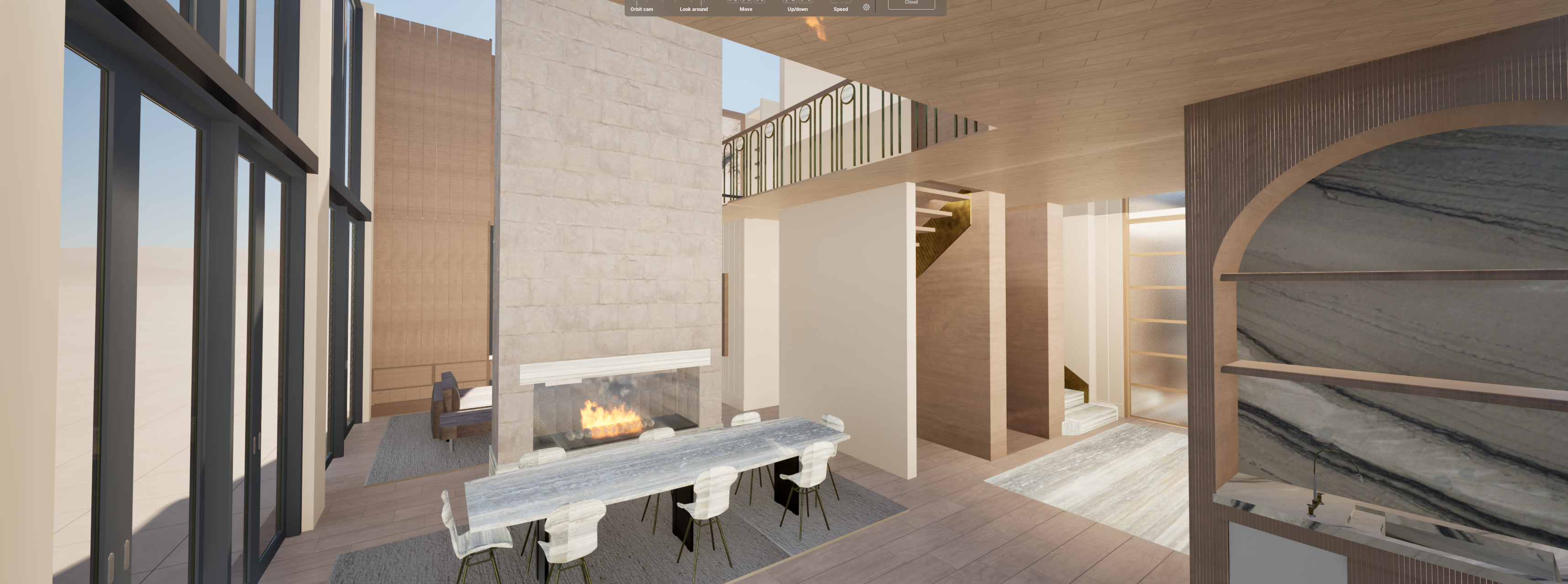 keep colour scheme the same the fire place is glass both ways make the fireplace 7 feets tall galss