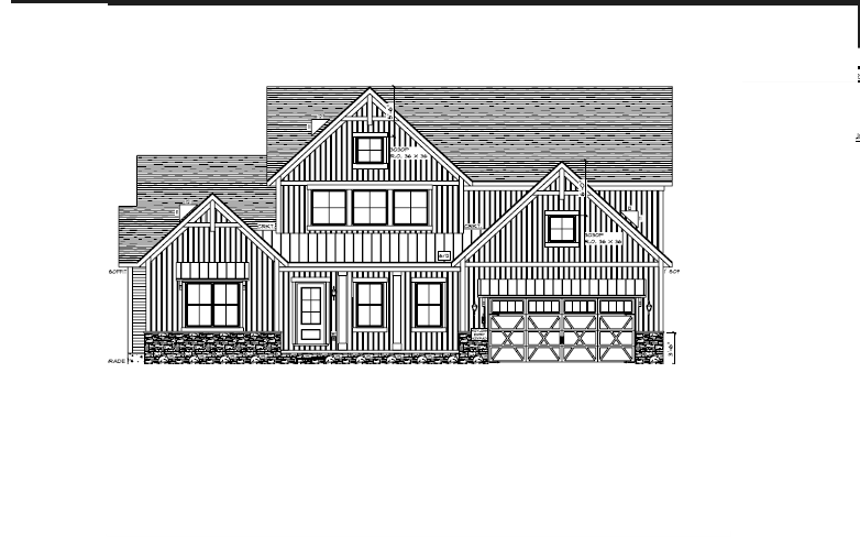 make as photorealistic as possible while keeping textures the same as selection professional landscaping in a lightly wooded scene with good lighting white vertical siding per plan buff color stone as shown on the plan dark roof black white windows solid black front door use siding beneath the porch