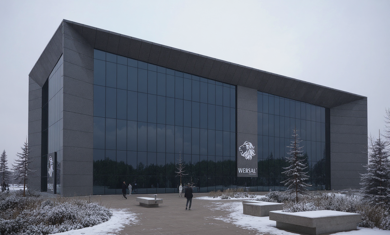design a modern square in front of an office building modern small architecture low decorative greenery pond architectural concrete quartz sinters add people winter view