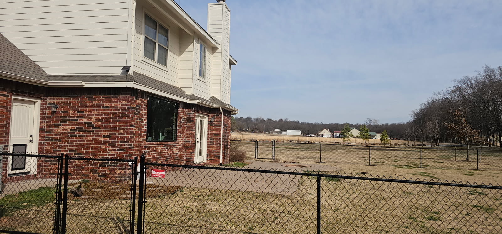 add concrete patio with cedar posts with patio furniture and roof covering only as high as the brick with a shed roof