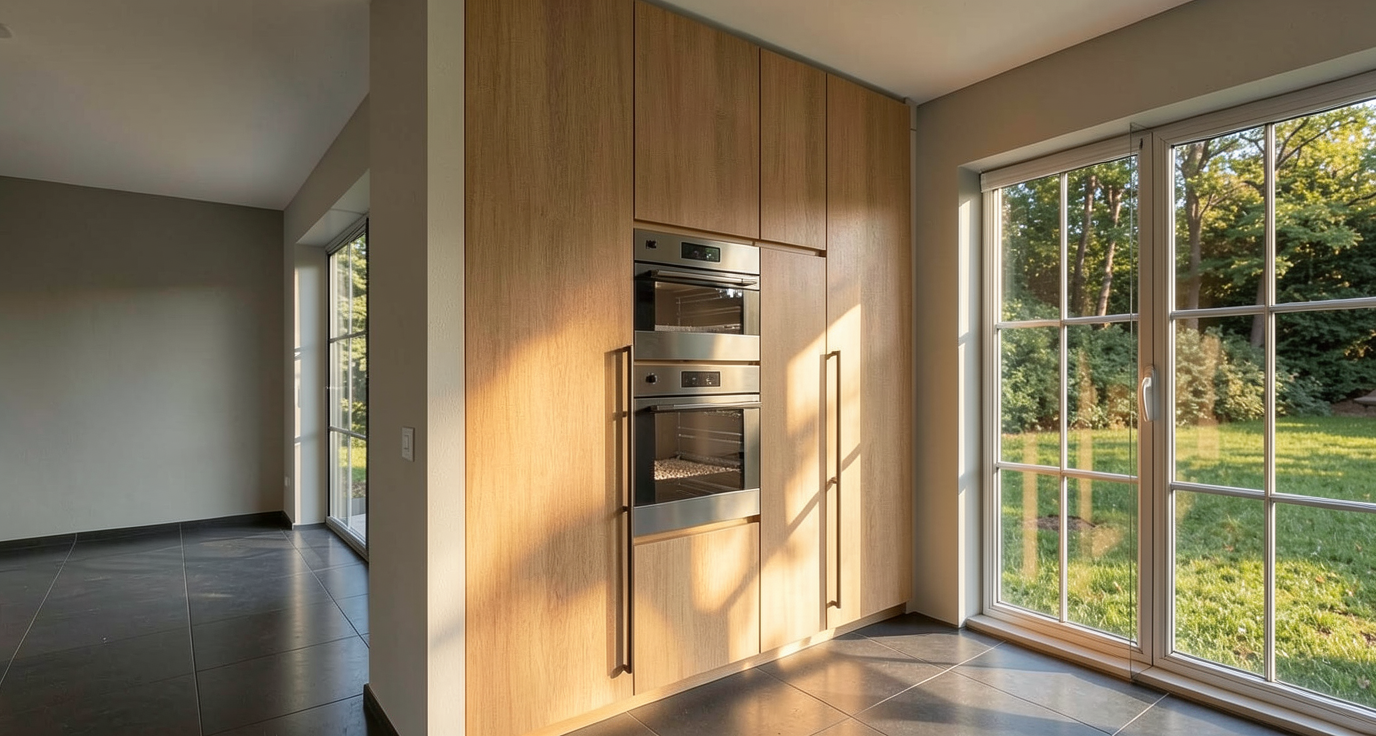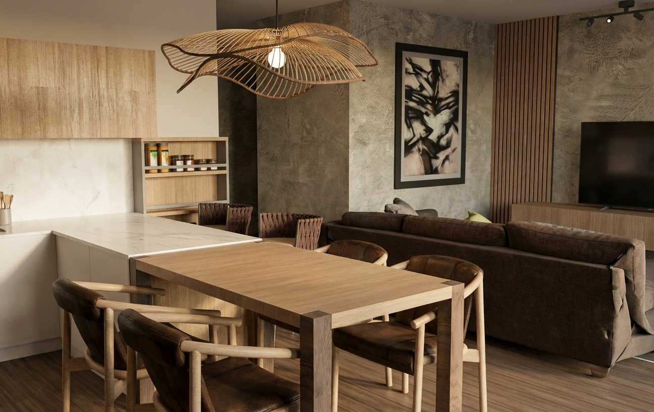 le pareti sono intonacate bianco caldo mantieni tessuto divano aggiungi strip led sotto pensile cucina mantieni pensile cucina laccato bianco aggiungi qualche oggetto sopra il top cucina mantieni colori tessuti lavabo e rubinetto in acciaio spazzolato tavolo laccato bianco opaco mantieni mobile ingresso laccato verde accendi luci ma mantieni luci 3d