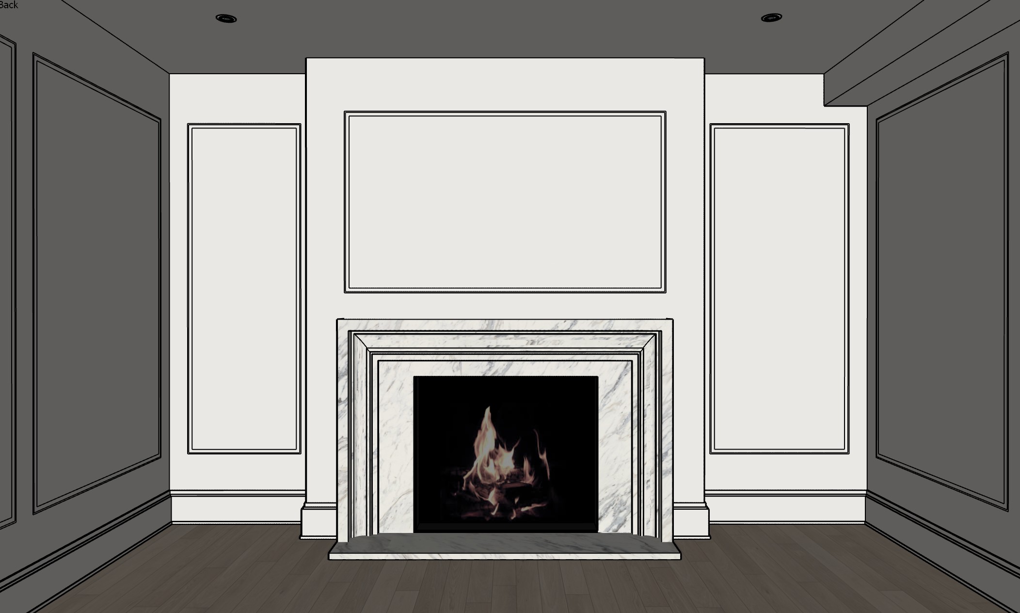 bright and cozy living room with a neutral color palette include a soft cream colored fireplace as the focal point framed by elegant light beige walls the floor is white oak beige wood planks add a glass screen in front of the fireplace as its a wood fireplace add herringbone tiles in a neutral color in the back of the fireplace insert the atmosphere is serene and welcoming evoking a sense of modern sophistication and tranquility