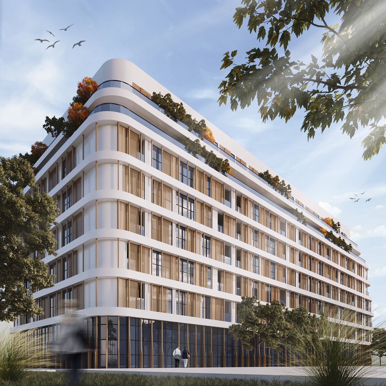 create a luxurious high class apartment complex surrounded by carefully arranged greenery position elegant trees mainly along the sides so they do not block the view of the building and add decorative bushes and well maintained patches of grass throughout the area include stylish people walking chatting and enjoying the space as well as sleek modern cars parked or driving nearby add lively activities around the building such as upscale outdoor caf s with patrons seated at sophisticated tables outdoor seating areas and small social gatherings ensure the scene feels vibrant open and welcoming while maintaining a polished fancy and high end aesthetic with a harmonious balance between greenery architecture and human activity architecture