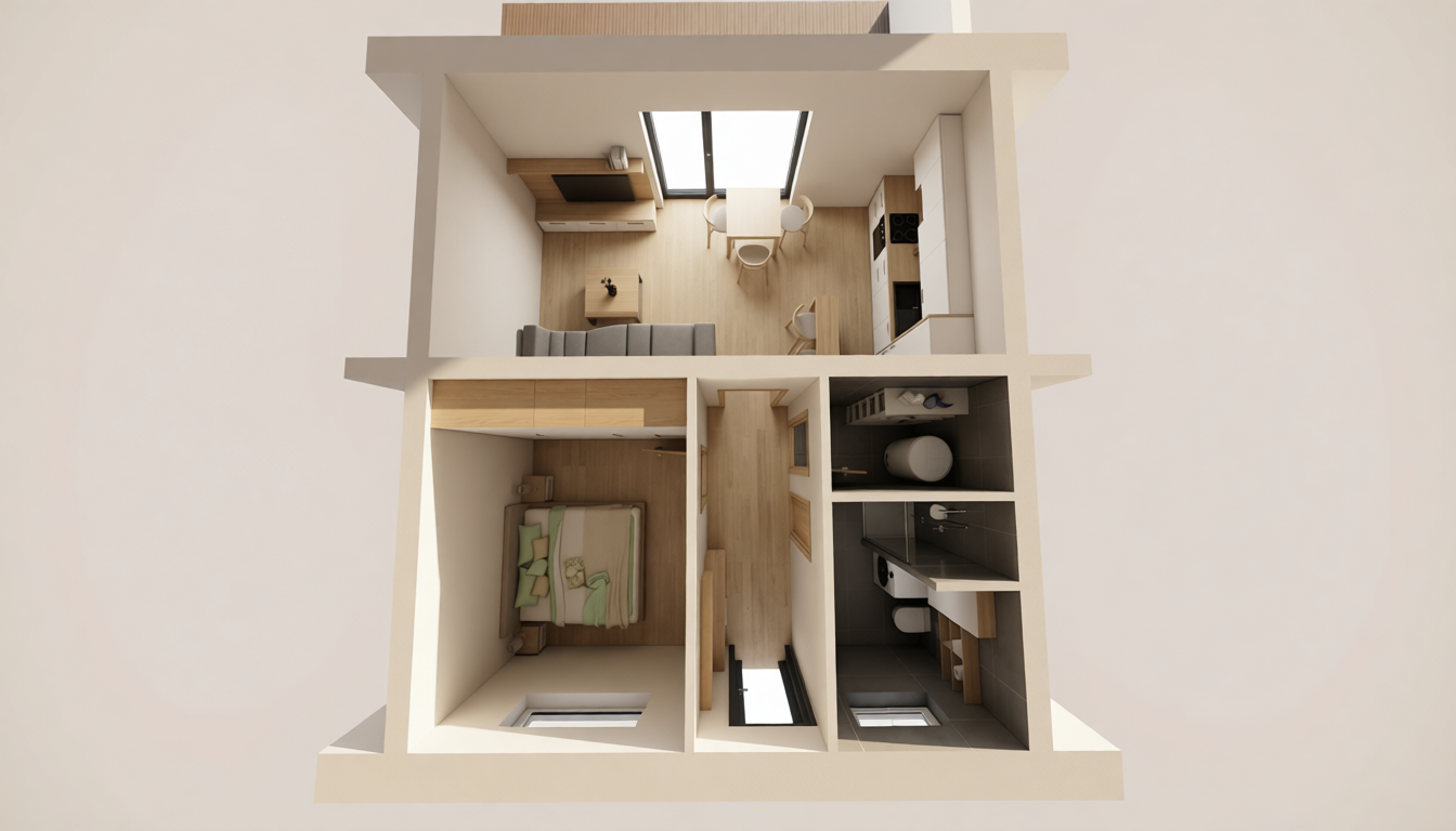 exterior shot the building is on a dusty mountainside in cyprus with rocks and shrubs in the foreground and olive trees in the background it is faced pale white local stone with a very smooth finish and regular joints