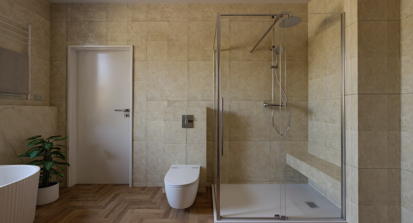 mediterranean revival exterior shot create a serene landscape featuring an old rustic house with warm weathered brick walls architecture