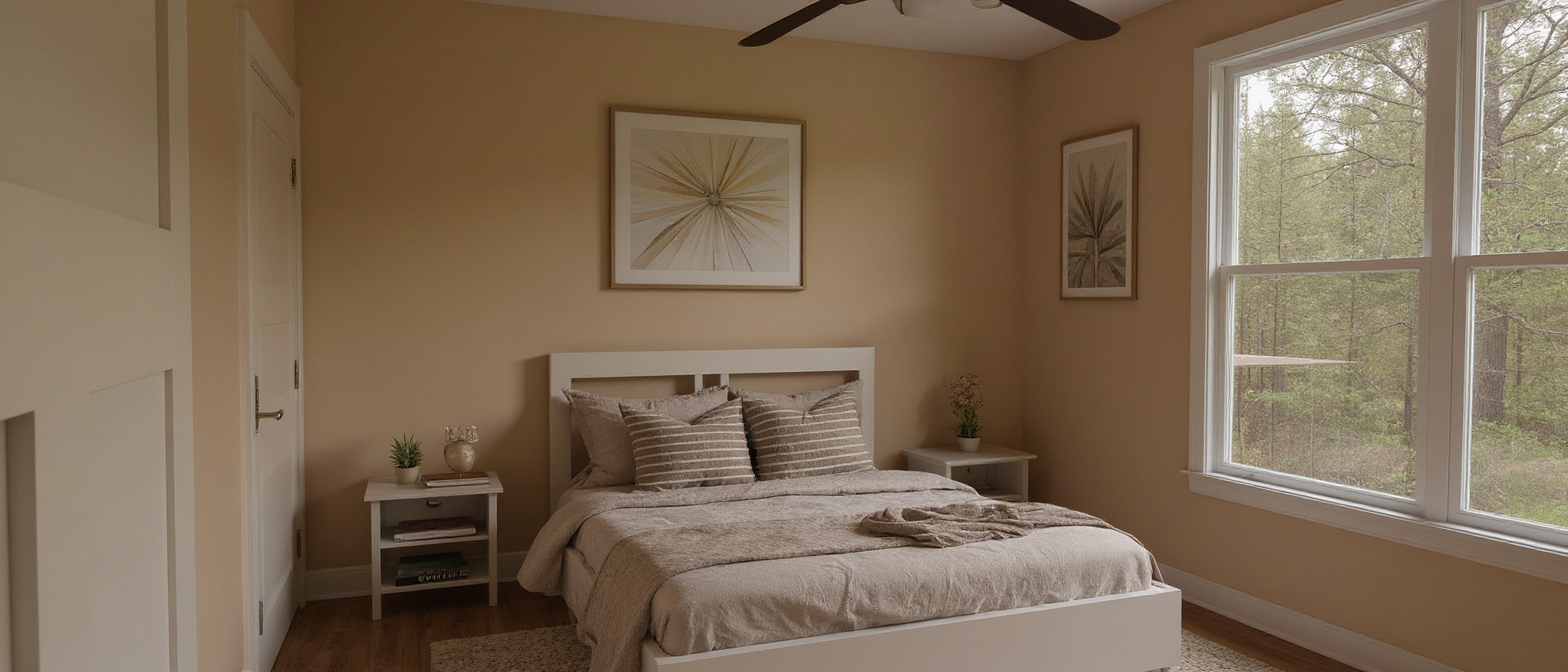 absolutely here s the description rewritten to match your existing bathroom layout bathroom design description for archsynth layout specific overall style modern organic spa bathroom with warm neutral palette natural materials and clean minimalist lines color palette soft whites warm beige sand tones natural wood tones charcoal gray accents creating a monochromatic soothing scheme wall treatments primary walls in crisp white with vertical paneling or shiplap texture shower area right side featuring vertical wood look tile or slat wall paneling in light natural oak blonde wood tone narrow vertical linear pattern creating subtle texture and visual interest white trim and molding for clean contrast flooring large format tile in light gray concrete appearance matte finish with subtle texture neutral stone look porcelain creating modern seamless look shower area across from the sink shower stall with full length curtain on right wall floor to ceiling linen curtain in natural beige oatmeal on ceiling mounted track brass gold shower fixture with rainfall showerhead mounted on wood paneled wall shower curtain creates soft spa like privacy wood slat accent wall inside shower zone vanity left side floating dark charcoal black countertop with integrated or undermount white sink modern rectangular sink positioned on left wall where existing vanity is open floating shelving below in matching dark finish for towel storage brass gold single handle faucet large mirror above vanity with simple frame or frameless minimalist design without upper cabinets toilet standard white toilet positioned centrally between vanity and shower matching existing layout lighting woven rattan natural fiber pendant light in elongated teardrop shape hanging near vanity area warm ambient lighting throughout natural light maintained from existing sources accessories styling wooden branch style wall hooks mounted on left wall near entry for towels waffle weave towels in cream natural tones woven natural fiber basket on vanity shelf or floor small potted greenery on vanity counter olive branch or eucalyptus organic spa aesthetic with natural textures throughout key features emphasis on natural materials wood slats woven fibers stone look tile warm metallics in brass gold layered neutral textures clean uncluttered surfaces organic modern aesthetic mood calm spa like warm minimalism with natural organic elements