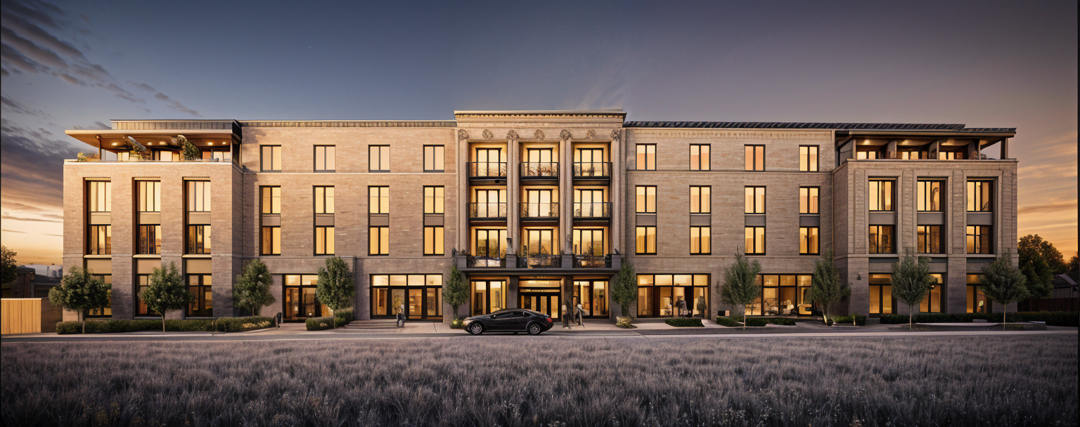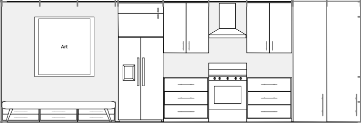 render this as an image lower dark green thin shaker cabinets with walnut flat panelled as the uppers gold working hardware faucets and handles silver appliances gas stove architecture