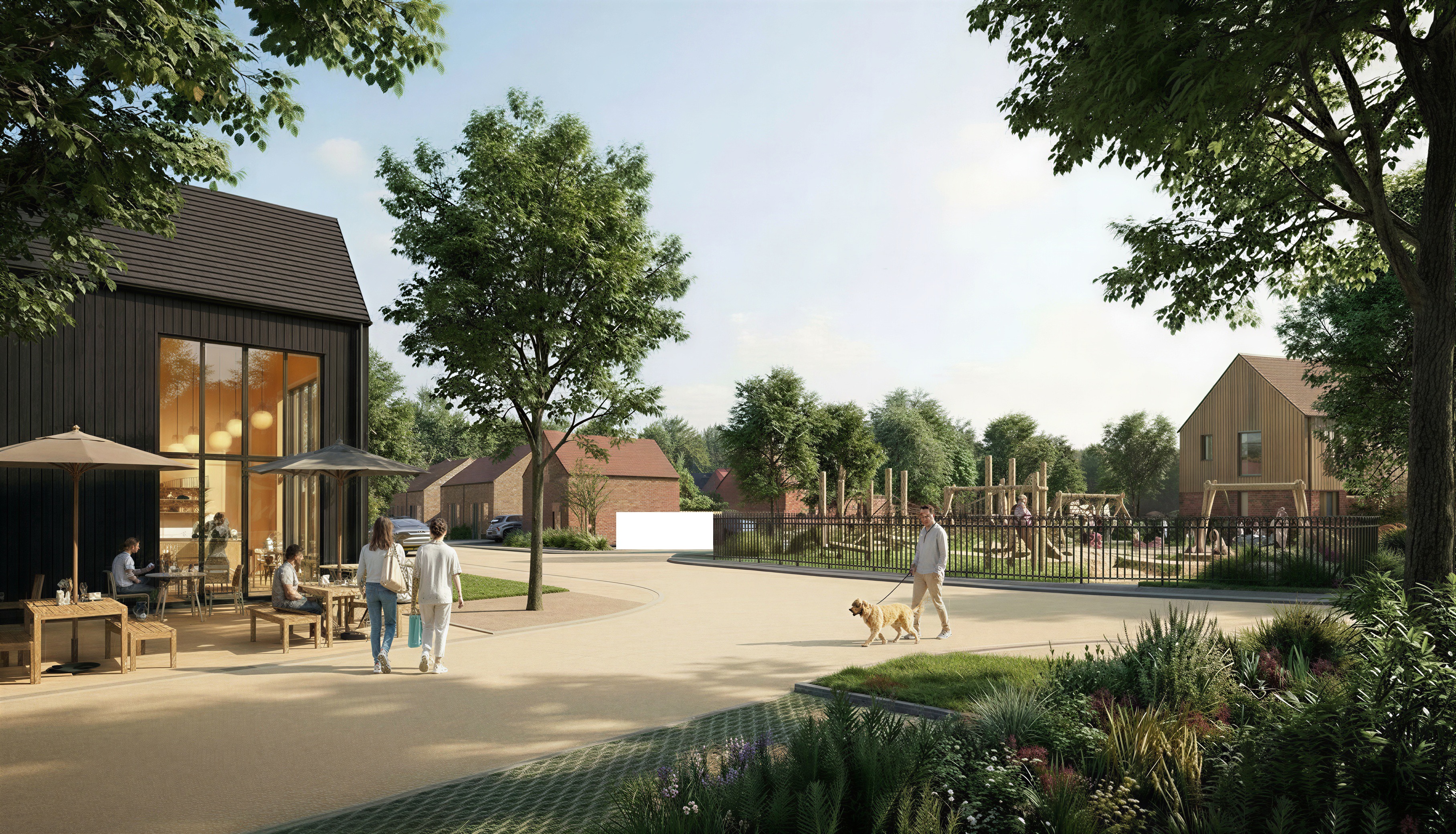 cover the white block on the image with bushes and a small amount of wild flower planting