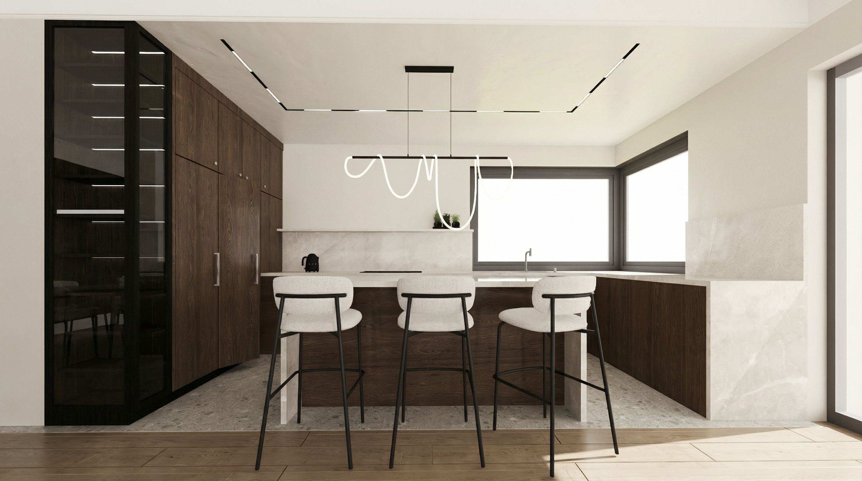 maintain the architectural details intact make the windows light blue make the stone detail light limestone in white tone make the roof asphalt shingles in light gray tones make the fireplace mantle light tope