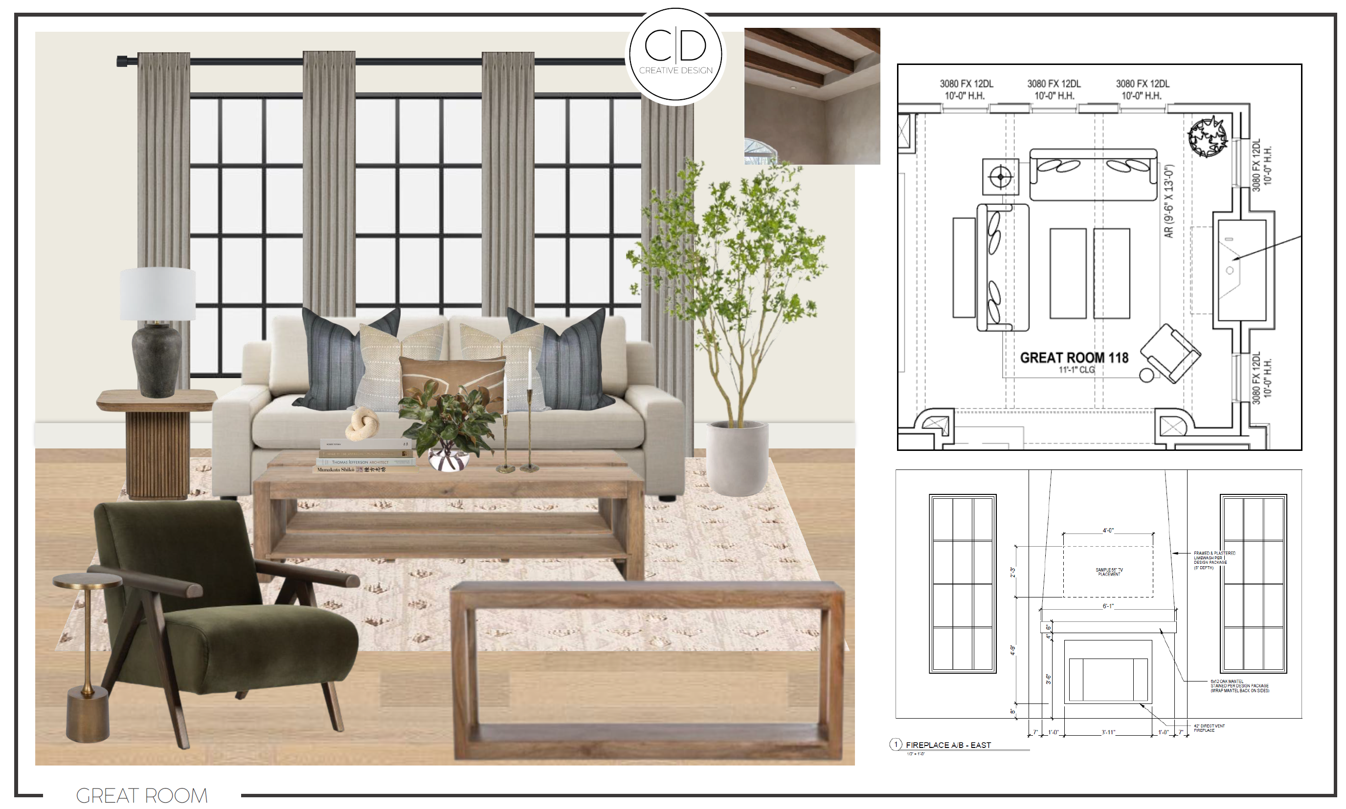 render based on flower mound tx weather and exterior walls are sw alabaster trim is sw pure white beams are stained to match flooring fireplace is smooth stucco in shape of elevation shown