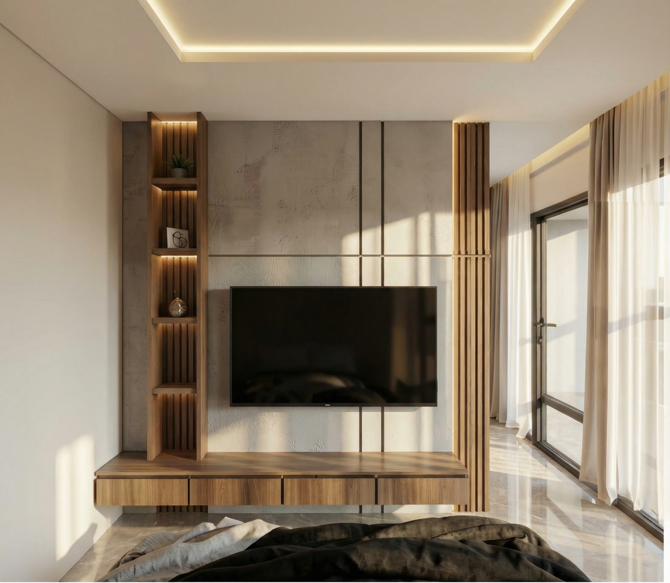 make the floor a little bit lighter and change the concrete texture become off white color