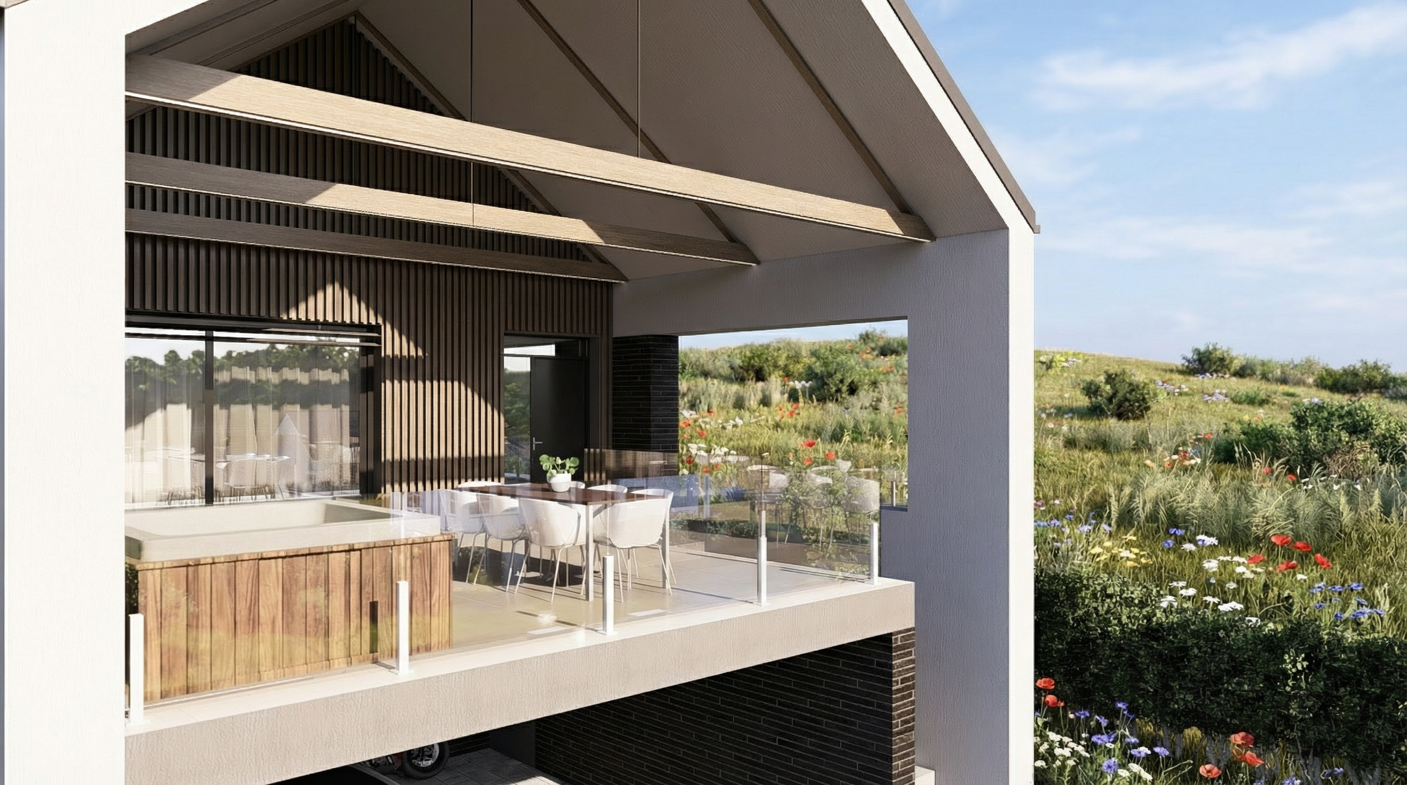 change the dark gary color to fairfaced concrete no paint keep the entry surround with wood clad as is
