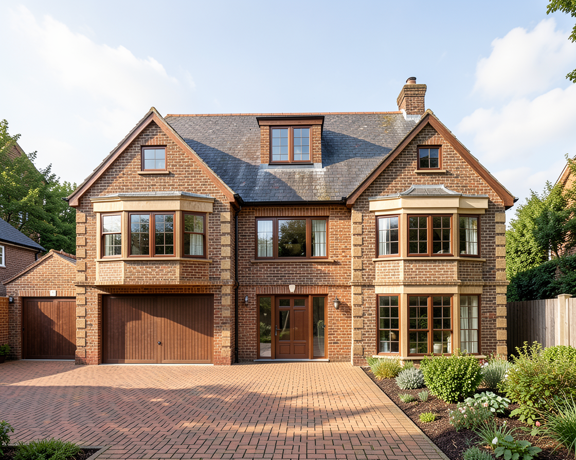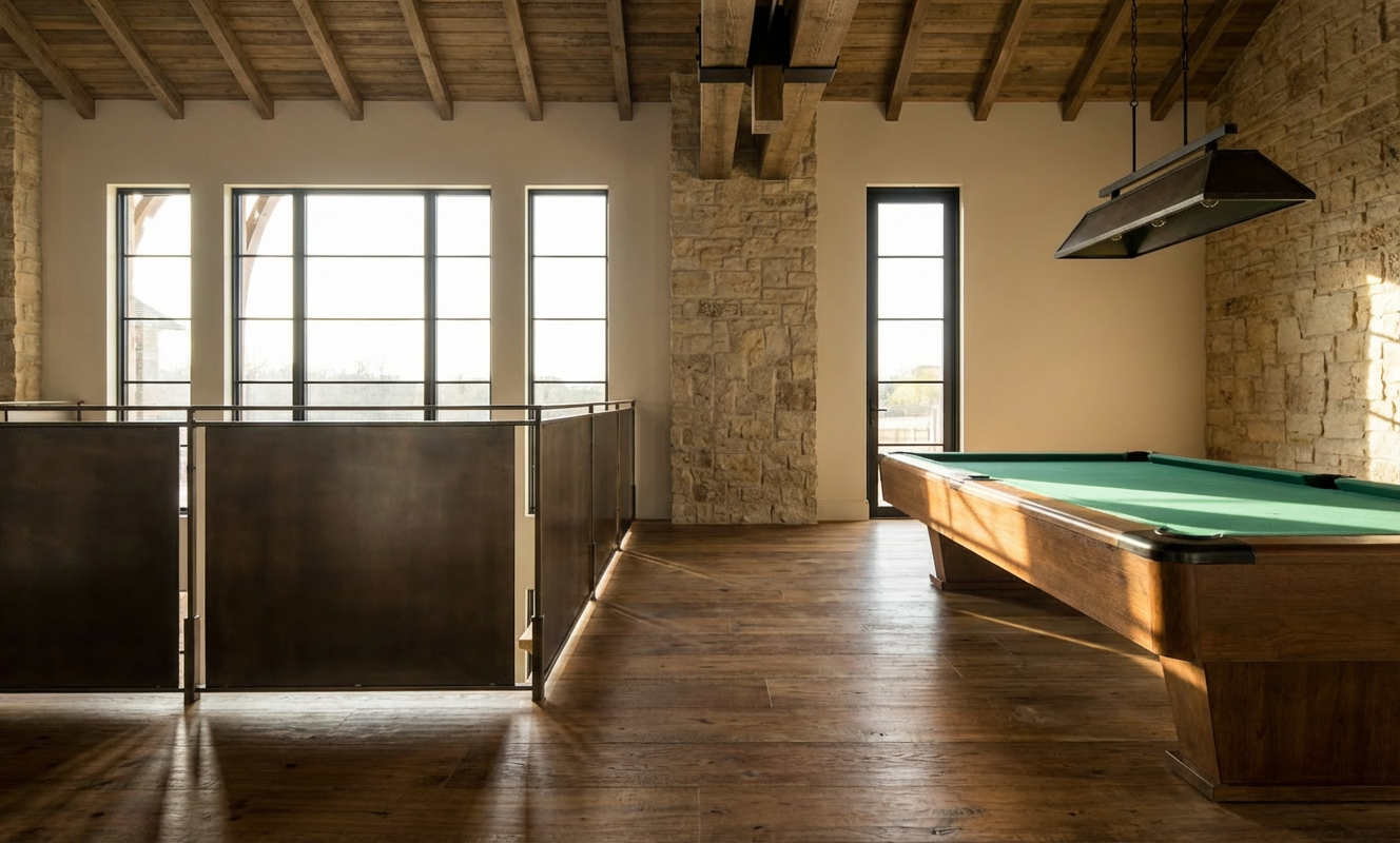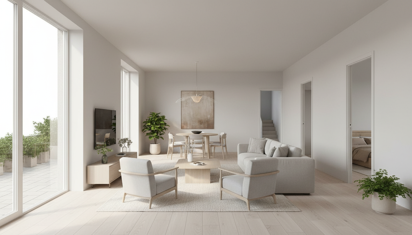 make the steps in wood very light oak modern keep the side of the staircase in white stucco make he handrail in dark bronze metal make the entrance floor only in a white stone in a modern pattern