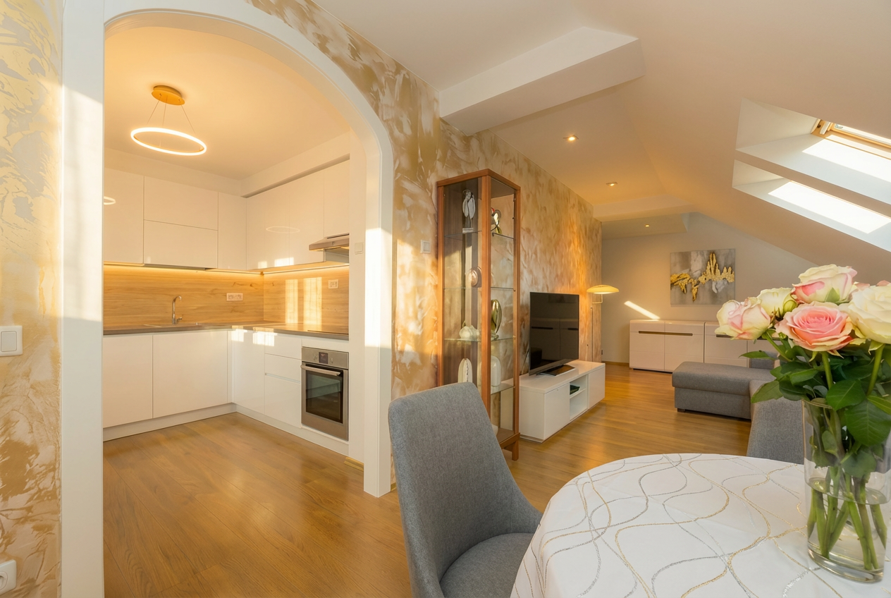 p idej rozpt len denn sv tlo na kor p m ho svitu slunce zv t i polom r kruhov ho stv tidla v kuchyni na dvojn sobek