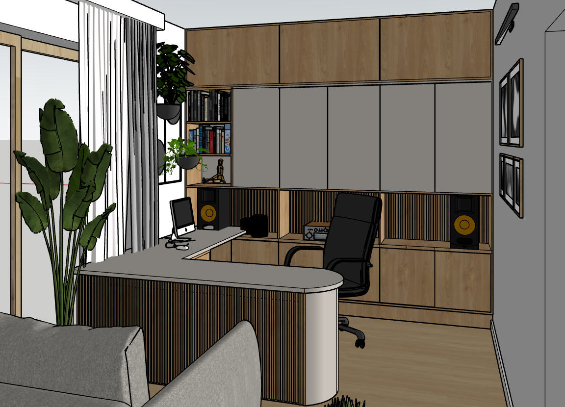 visualisation make oak shelves and desk