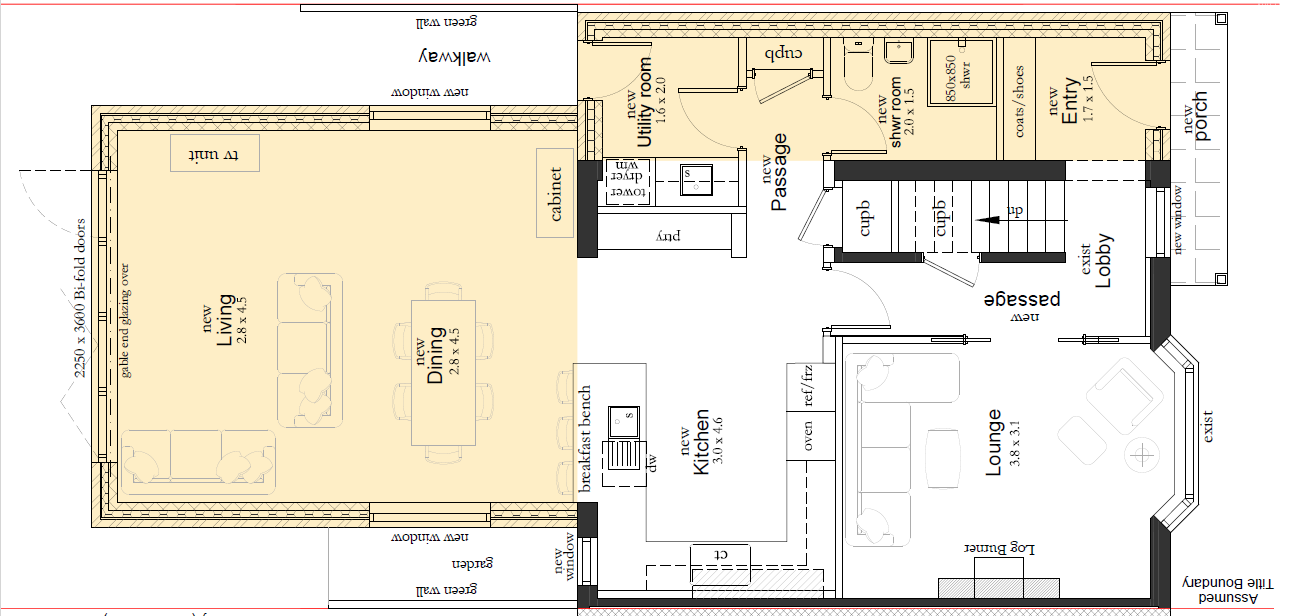 render a cozy and modern open floor plan showcasing a living room dining area kitchen utility room shower room entryway and lounge use soft beige walls for a warm atmosphere living room and dining area with light oak wooden flooring and cream furnishings place a light grey modern sofa set and a round oak dining table with white chairs kitchen with white glossy cabinets stainless steel appliances and a marble countertop utility room with soft pastel colors and white shelving shower room with white tiles and a glass shower enclosure entryway with dark wood for the coat rack and shoe storage lounge decorated with muted grey walls a soft beige rug and large windows allowing natural light the atmosphere should be serene inviting and elegantly minimalist architecture