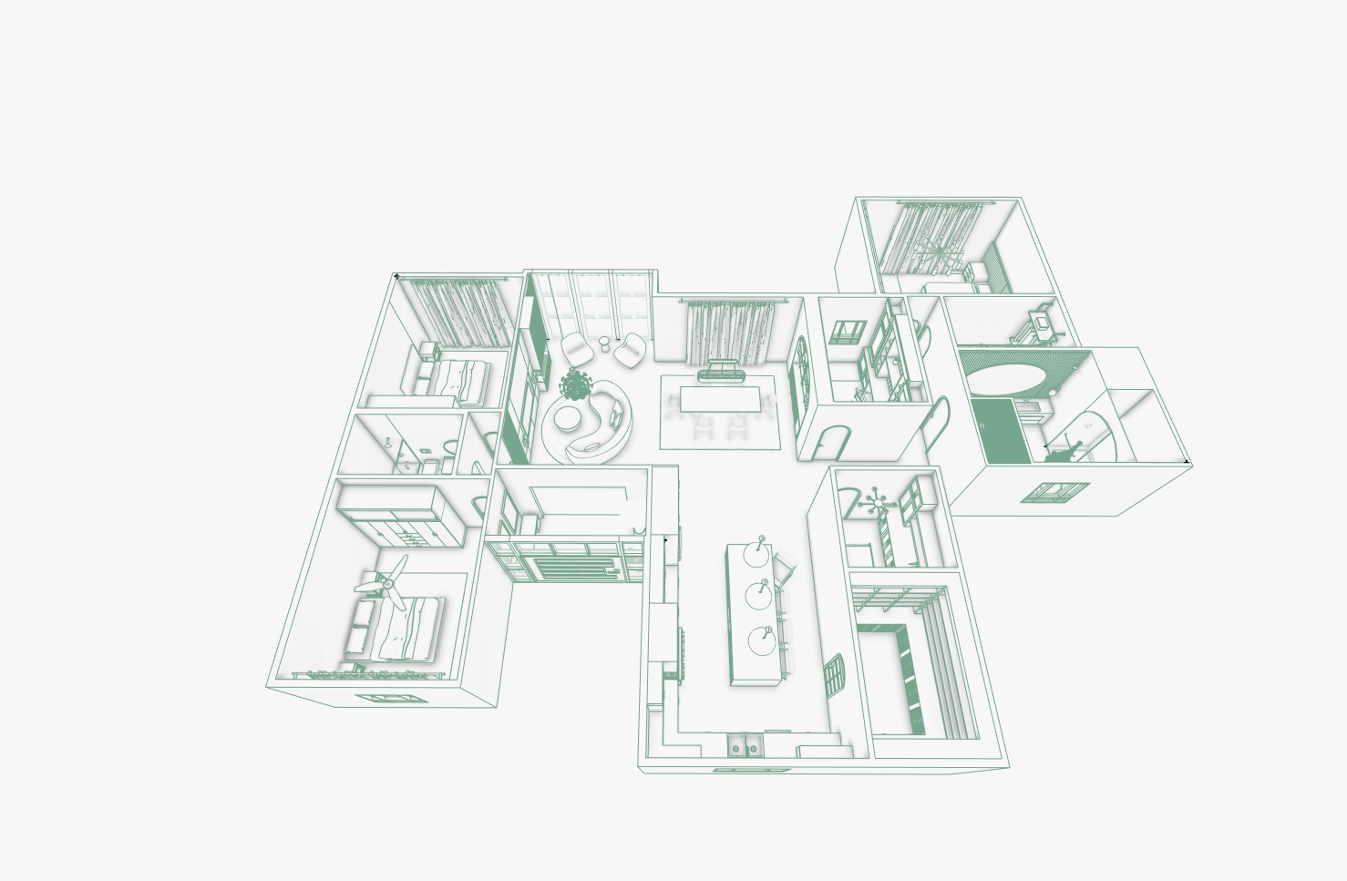 ultra realistic modern luxury living room soft contemporary aesthetic curved cream boucle sofa in foreground round low modern coffee table with matte dark top and sculptural white base dark walnut paneled feature wall with integrated flat screen tv and vertical brass wall sconces black marble and matte black built in fireplace on right side vertical black slat accent wall on left full height taupe sheer curtains with subtle pleats sculptural glass petal chandelier centered above seating two organic curved lounge chairs in soft ivory fabric small modern pedestal side table wide plank grey oak flooring soft diffused daylight filtering through sheer curtains warm ambient glow from fireplace cinematic natural lighting subtle shadow depth global illumination ray traced reflections realistic fabric texture visible wood grain detail brushed brass metal reflections true to life scale balanced contrast neutral warm color grading 35mm lens eye level perspective depth of field ultra high resolution 8k photoreal render material realism priority boucle texture highly detailed walnut veneer natural variation matte black cabinetry low sheen marble subtle veining sheer curtain translucency accurate to light source mood calm elevated warm minimalism soft luxury editorial interior photography ultra realistic modern luxury dining room with integrated bar wall soft contemporary aesthetic dark walnut rectangular dining table with sculptural fluted pedestal base five upholstered dining chairs in cream boucle fabric with solid walnut wood frames subtle textured neutral area rug beneath table full height taupe sheer curtains on left filtering soft daylight statement suspended linear pendant light with pleated fabric shade centered above table warm diffused glow arched built in bar feature wall with dark wood framing large format white marble slab backsplash with soft grey veining floating black metal and brass accent shelving with curated glassware styling matte black lower cabinetry with brushed brass hardware integrated undercounter wine fridge with visible bottles light wide plank oak flooring soft neutral palette warm wood tones balanced with marble and brass accents lighting soft natural daylight from window filtered through sheers subtle warm ambient under shelf lighting realistic shadow depth global illumination ray traced reflections natural fabric texture detail accurate marble veining realistic wood grain variation brushed brass metallic reflections camera eye level perspective 35mm lens slight depth of field balanced composition editorial interior photography style ultra high resolution 8k photoreal render material realism priority boucle texture detailed and tactile walnut grain rich and natural marble surface slightly polished with soft reflectivity matte black cabinetry low sheen curtain translucency accurate to light source mood refined calm modern soft luxury high end residential interior architectural digest style