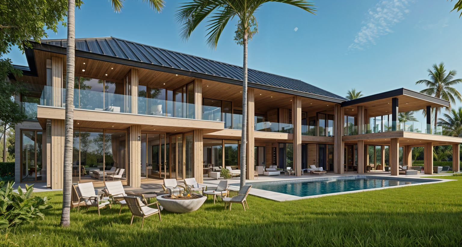 exterior shot enhance the drawing with realistic render based on the mood board material