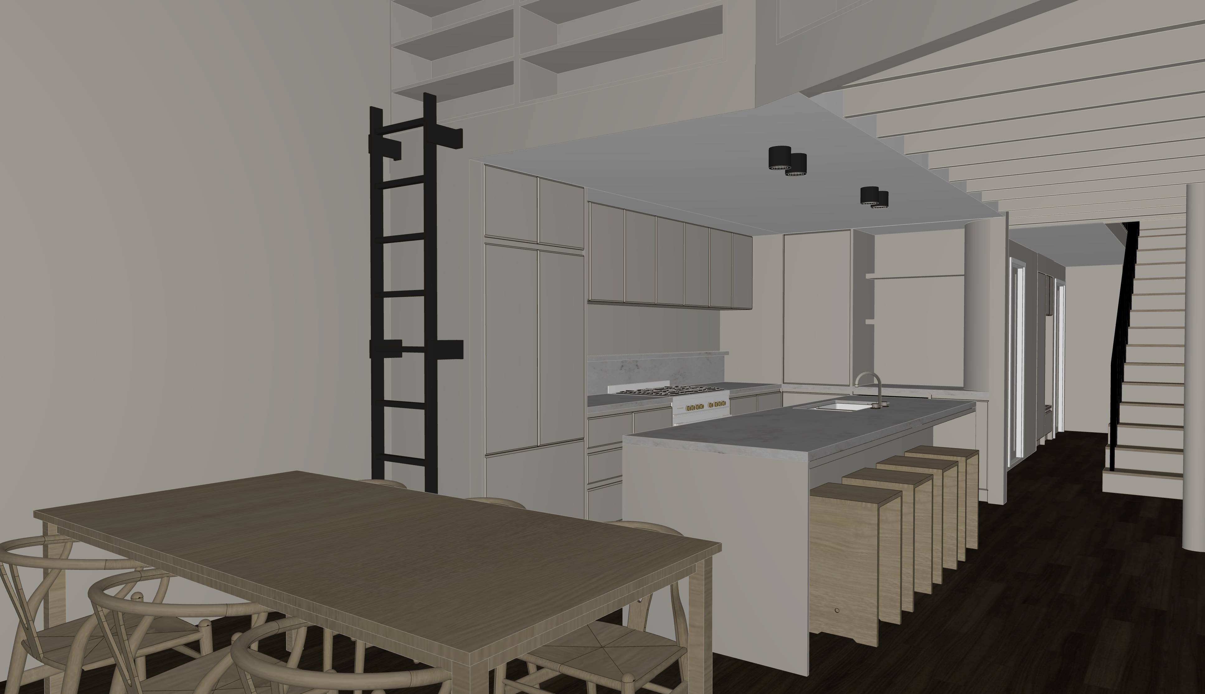 apartment interior perspective to be rendered with the current surfaces to be maintained as they are accurate to the finishes