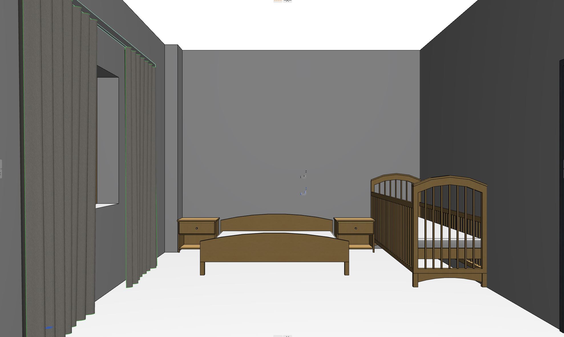 fotorealistin moderni miegamojo 3d vizualizacija tiksliai pagal mano pateikt 3d vaizd i laikyti identi k kamer perspektyv ir kompozicij grie tai nekeisti kambario geometrijos sien proporcij auk io kamp sien modelio strukt ros jokio perstatymo ar papildom ni grie tai nekeisti lang dyd io proporcij auk io ir vietos langai identi ki kaip originale lang r mai balti sien spalva matin balta grindys su kilimine danga per vis plot nuo sienos iki sienos wall to wall carpet viesi vientisa trumpo plauko low pile mink ta bet tvarkinga tekst ra interjeras iltas modernus minimalizmas didel viesiai sm lio spalvos mink ta dvigul lova su gobtuvu daug dekoratyvini pagalvi vies s tekst riniai patalai u klotas per kra t vir lovos du eimos paveikslai juoduose r muose abiejose pus se juodi naktiniai staliukai su moderniomis lempomis iltas ap vietimas u uolaidos kabinamos ant sienini laikikli sieninio karnizo matomas tvirtinimas ne ni oje ir ne leistos lubose balta permatoma u uolaida sm lio spalvos sunkesn u uolaida lubose montuoti ta kiniai viestuvai velni ilta viesa realisti kos med iagos auk ta kokyb 4k varus modernus dizainas terpti papildom vaiki k lov namelio formos house bed ir pastatyti j de in je dvigul s lovos pus je vaiki ka lovyt balta medin emas r mas stogelio formos konstrukcija su oniniu apsauginiu borteliu lovos viduje tamsiai m lynos u uolaid l s tekstilin u danga ilta led girlianda po stogu patalyn viesi su keliomis pagalv l mis m lyna sm lio spalvos mink tas pledas ant lovyt s alia ma as aislas pvz pliu inis vaiki ka zona subtili stilinga deranti prie modernaus miegamojo neperkrauti dekoro vaiki ka lova turi atrodyti realisti kai ir proporcingai bet nekeisti sien lang ir kambario planin s strukt ros