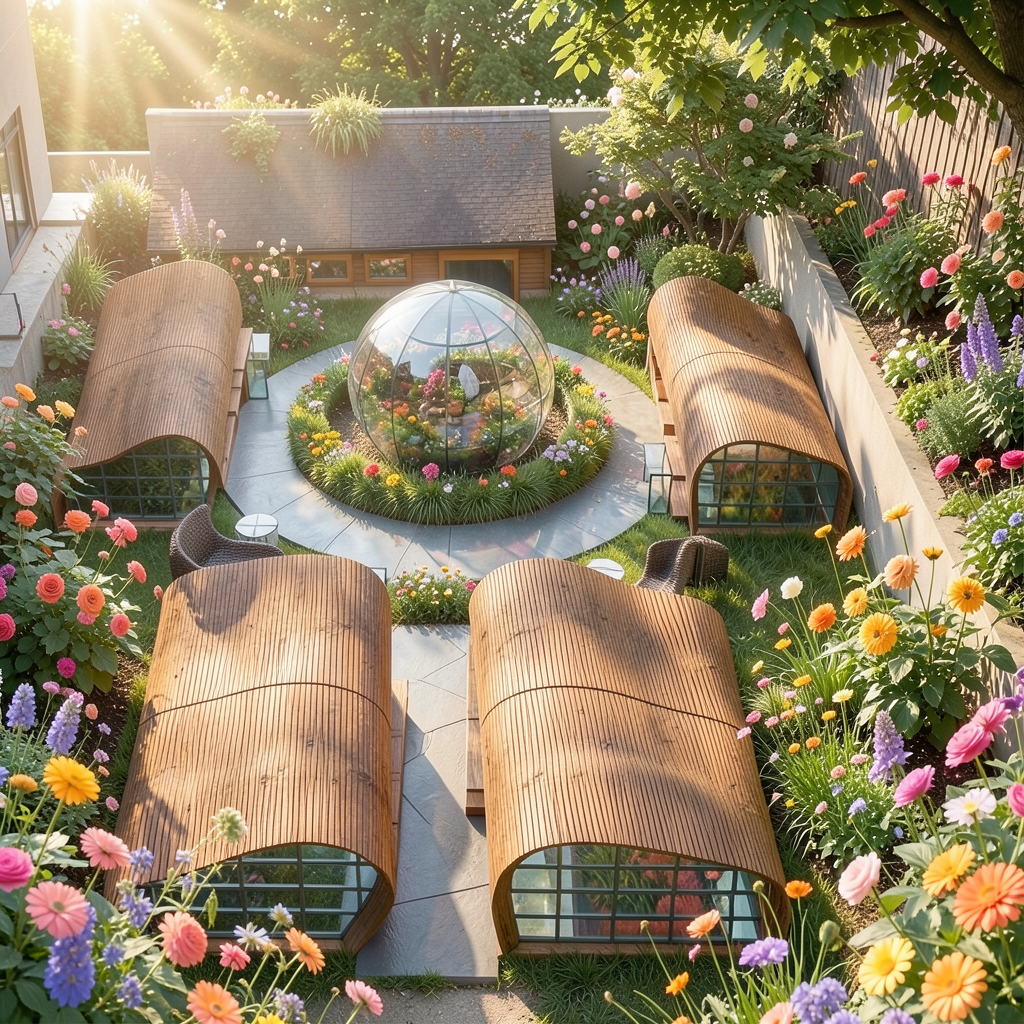 welcome to the beautiful garden of the sculpture shown in the middle a beautiful garden with eveninglighting