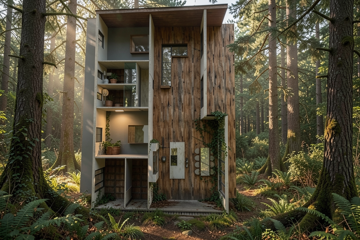 render it in natural scandinavian style the side panel is white no light on the shelf