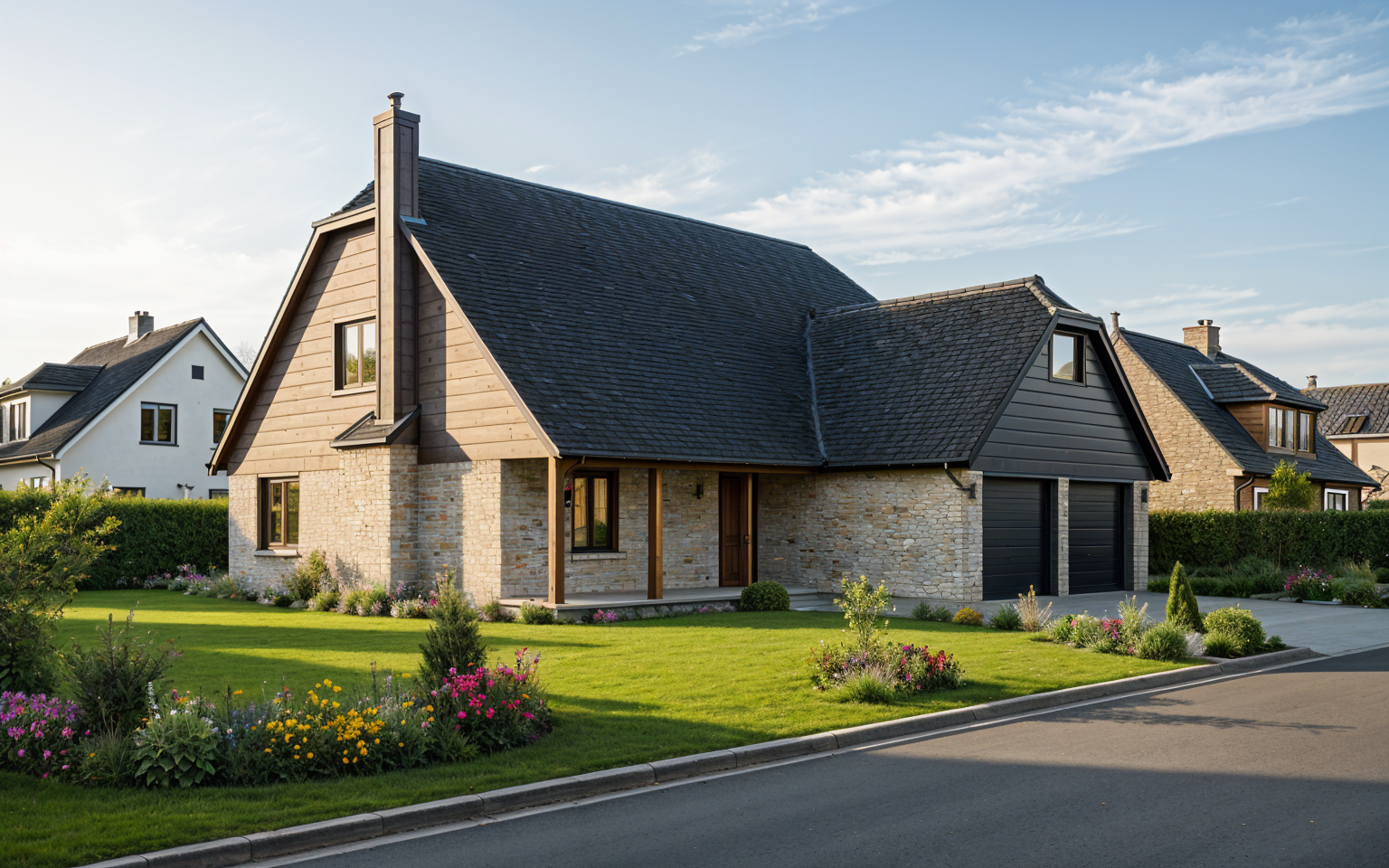 white vertical nuform panels board batten painted black no knots in wood blue canopy detached from building remove shine
