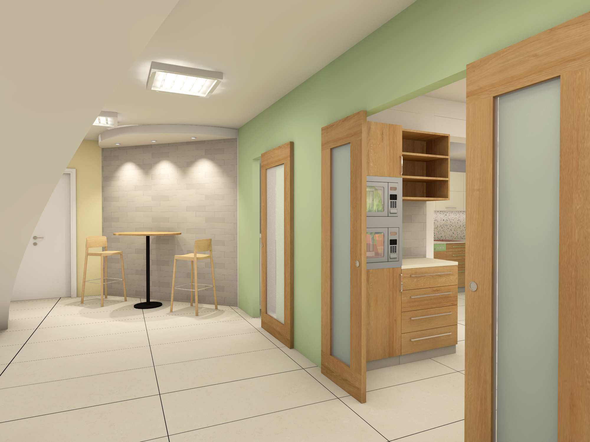 k sz tsprofesszion lis fotorealisztikus l tv nytervet a fali csampe legyen metrocsempe hat s f nyes itt ott csillanjon meg rajta a l mpaf ny a k t sz k k zti asztalon legyen egy lapos kos r tele gy m lccsel legyenek az asztalon k v scs sz k a sz k m g tt legyen egy keskeny kos r llv ny tele z lds gekke magokkal s gy m lcs kkel
