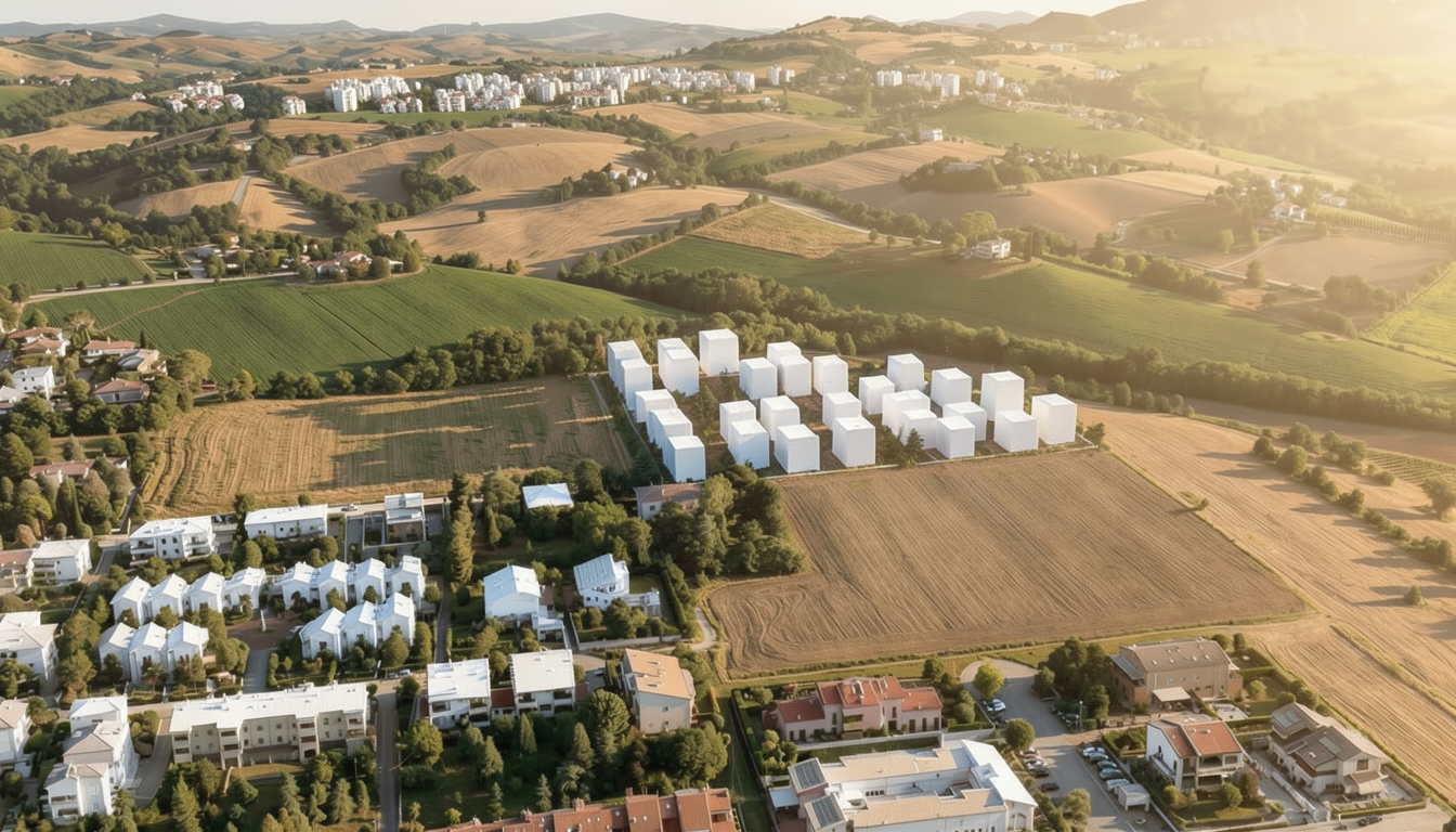 cream and red stone render wood features black and glazing curtain walling cream stone chimneys minimal grass landscaping render as shown do not add additional elements contemporary farm house architectural style