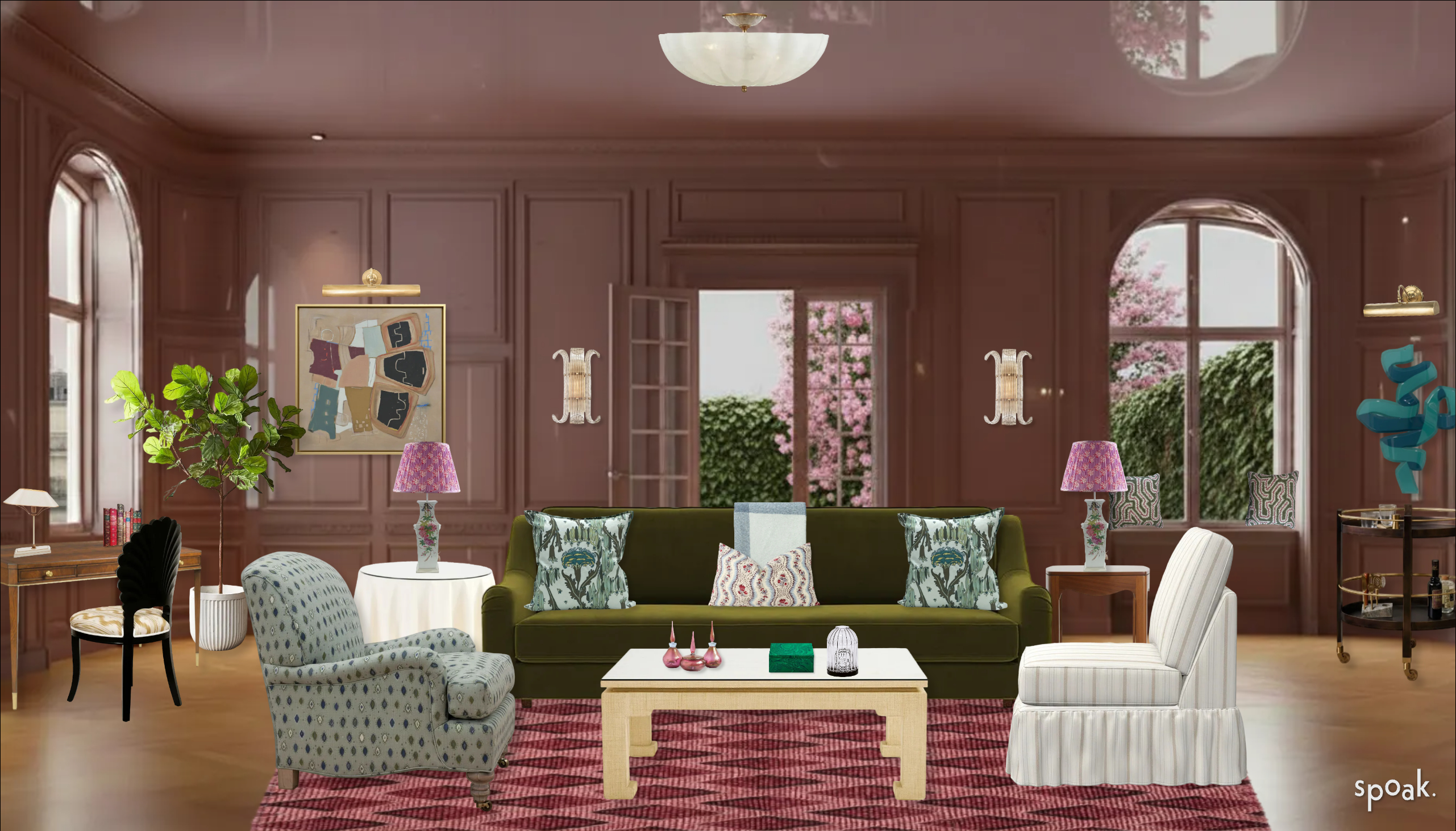 transform this into an ultra real interior photograph do not add remove replace distort repaint or redesign anything do not change the furniture art styling patterns colors proportions layout or any objects do not alter any artwork textiles throws or the writing on books preserve every element exactly as it is your only task is to improve physical realism introduce correct gravity and weight to all objects refine true to life lighting behavior realistic shadow casting and contact shadows natural exposure roll off subtle atmospheric depth correct surface response fabric softness wood absorption metal highlights glass behavior the result should feel like a professionally photographed interior for veranda architectural digest shot on a high end lens natural light physically believable not stylized not illustrated not redesigned the space must remain identical only realism and photographic quality are enhanced do not turn lamps and scones on do not change patterns on pillow art lamps or chairs do not change the color or texture of items do not change or remove items on the coffee table