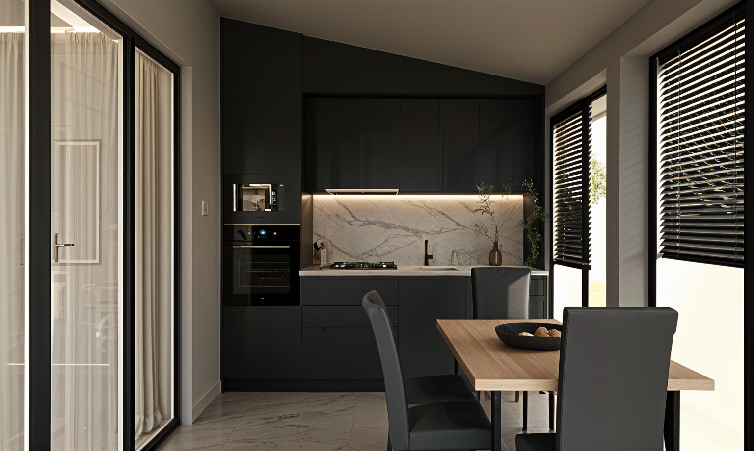 put the vase with flower on the table and change the countertop and backsplash to be travertine the floor should be wood immitating tile