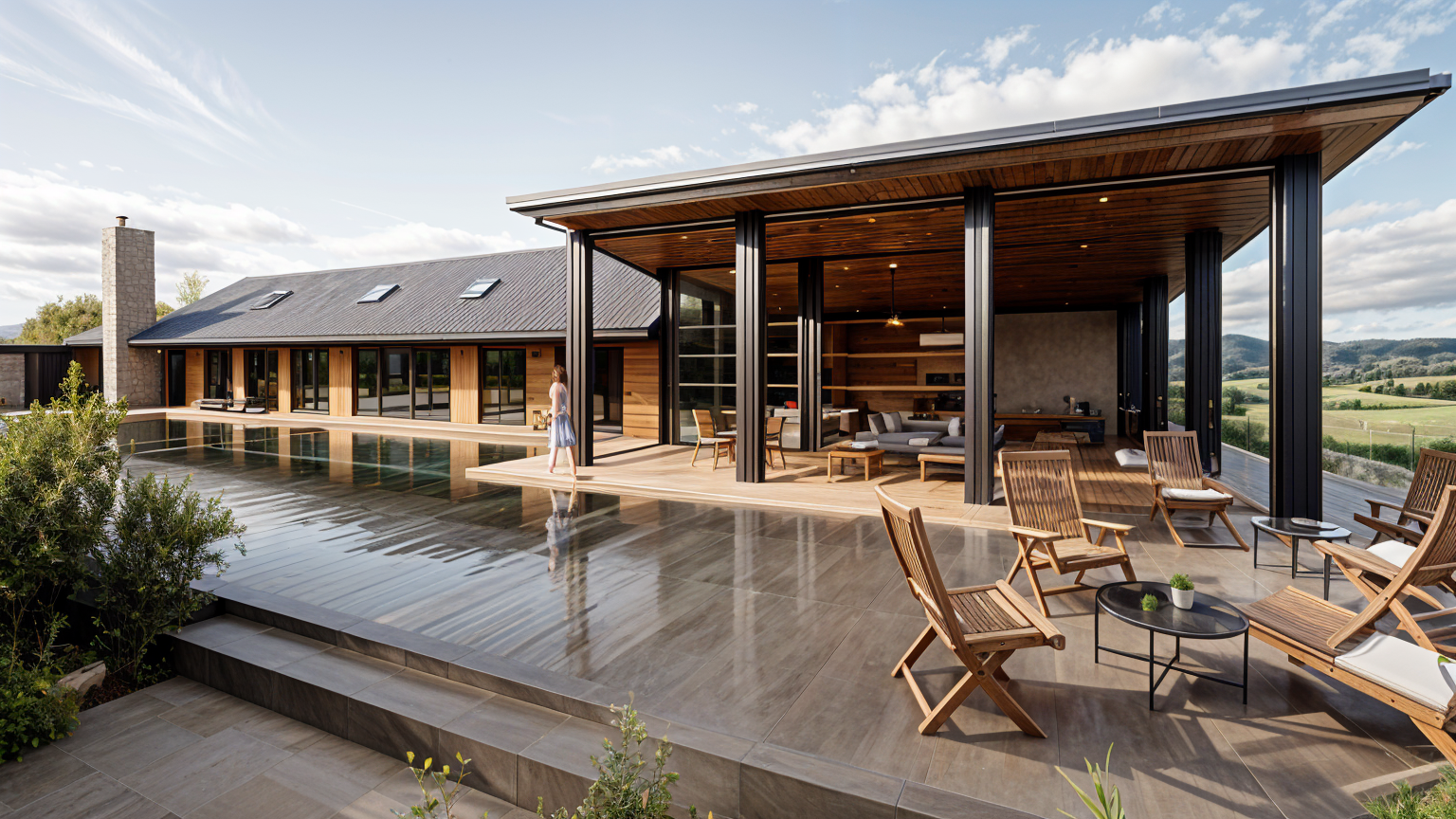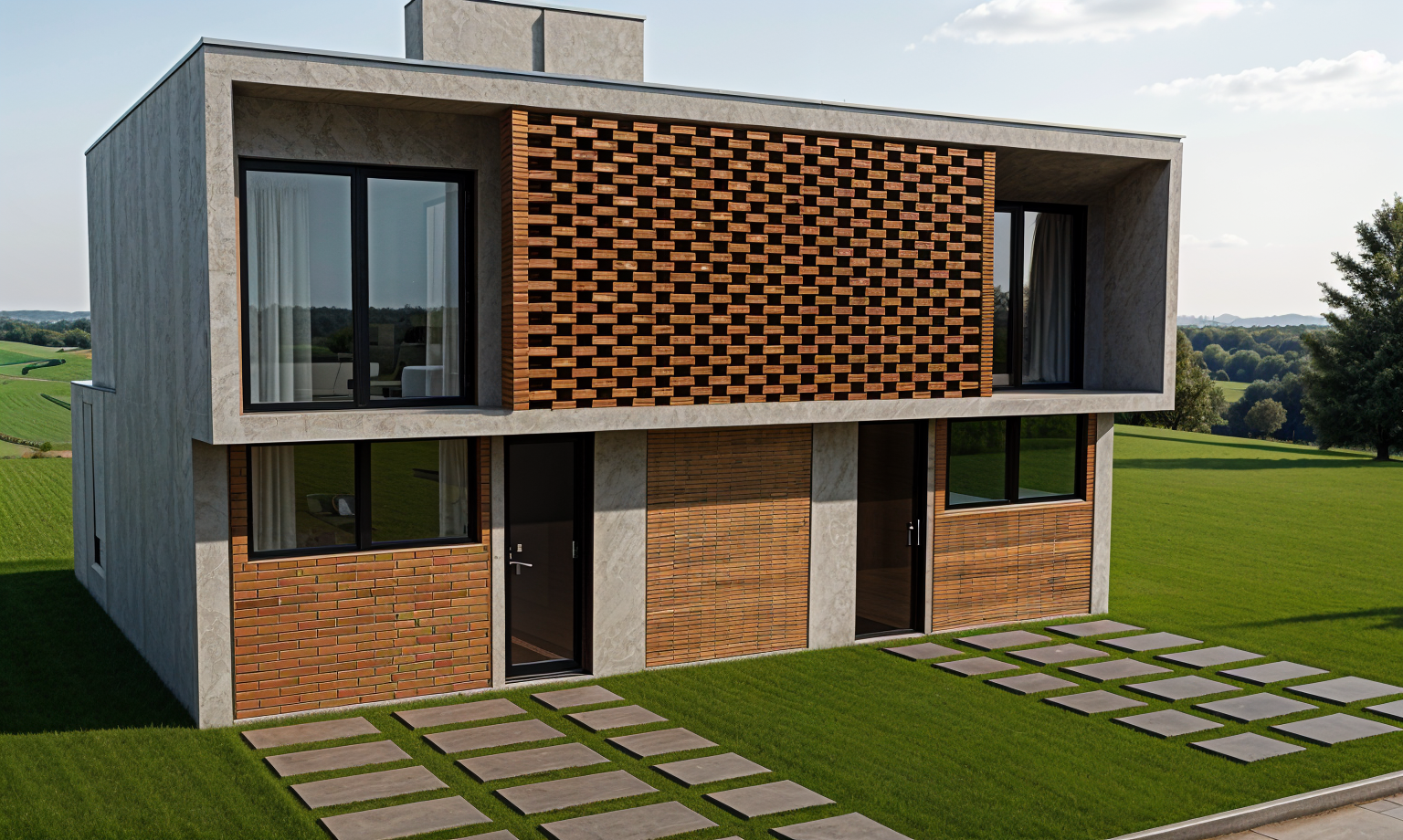 modern house shed roofs flat roofs and gables velour brick and stone standing seam roof golf course left side