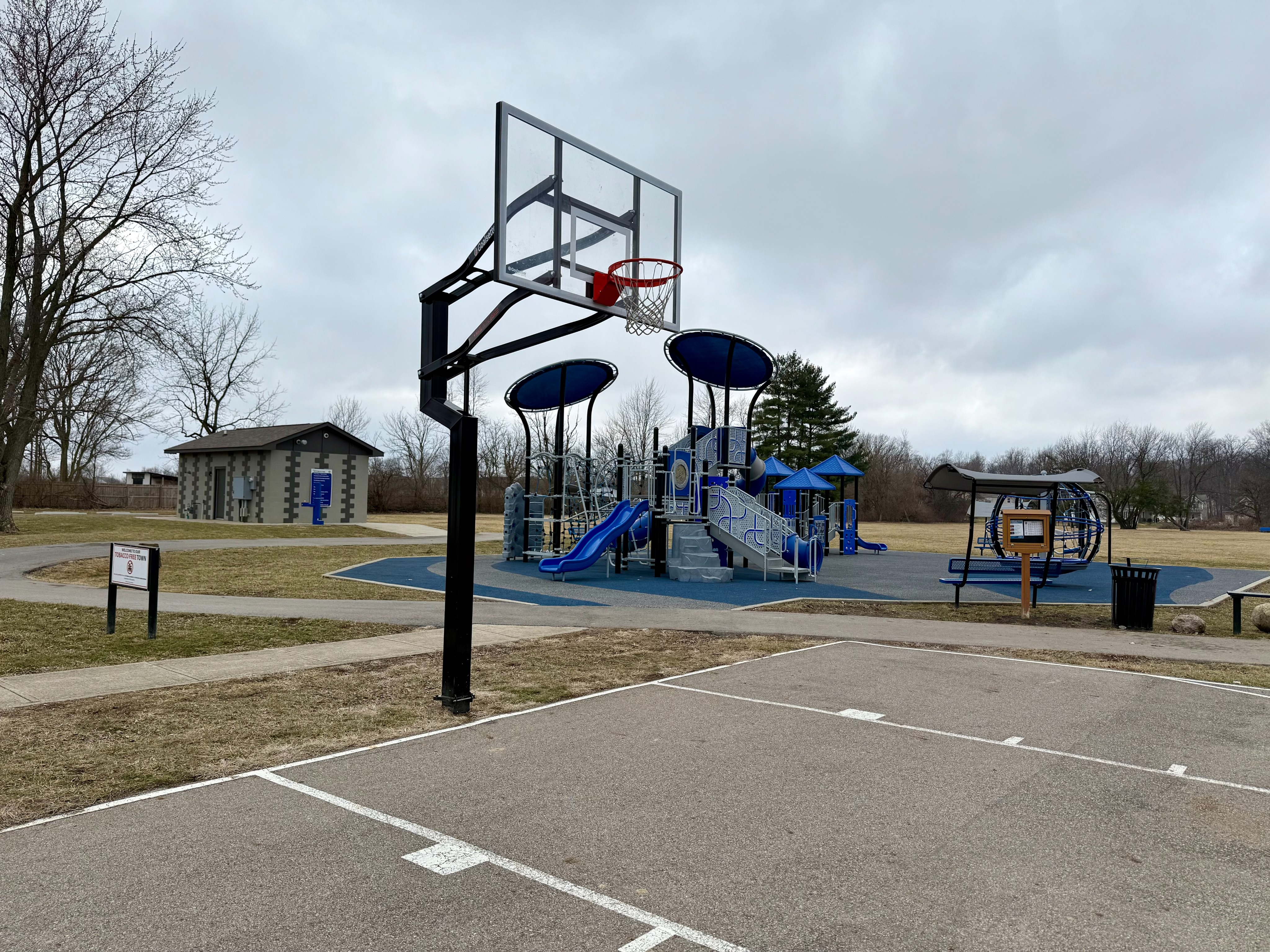 turn this into a professional grade photo and make it feel like indiana in the spring do not change anything about the placement of park structures and do not change landscape design