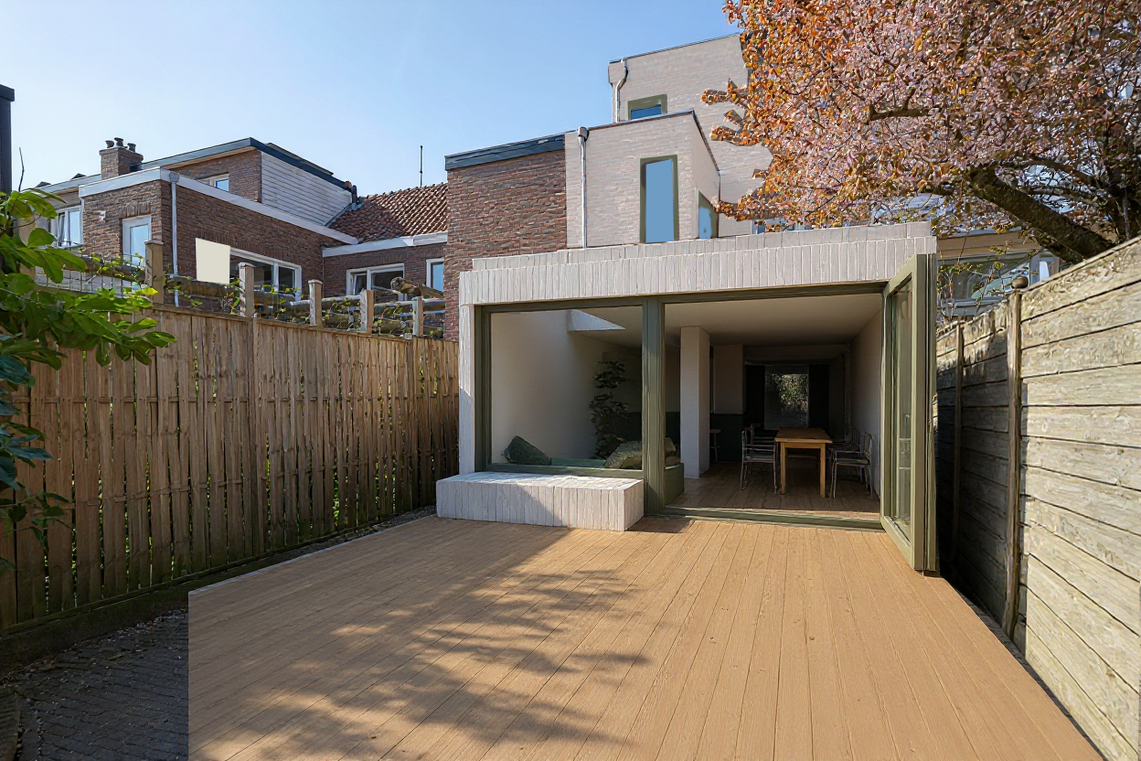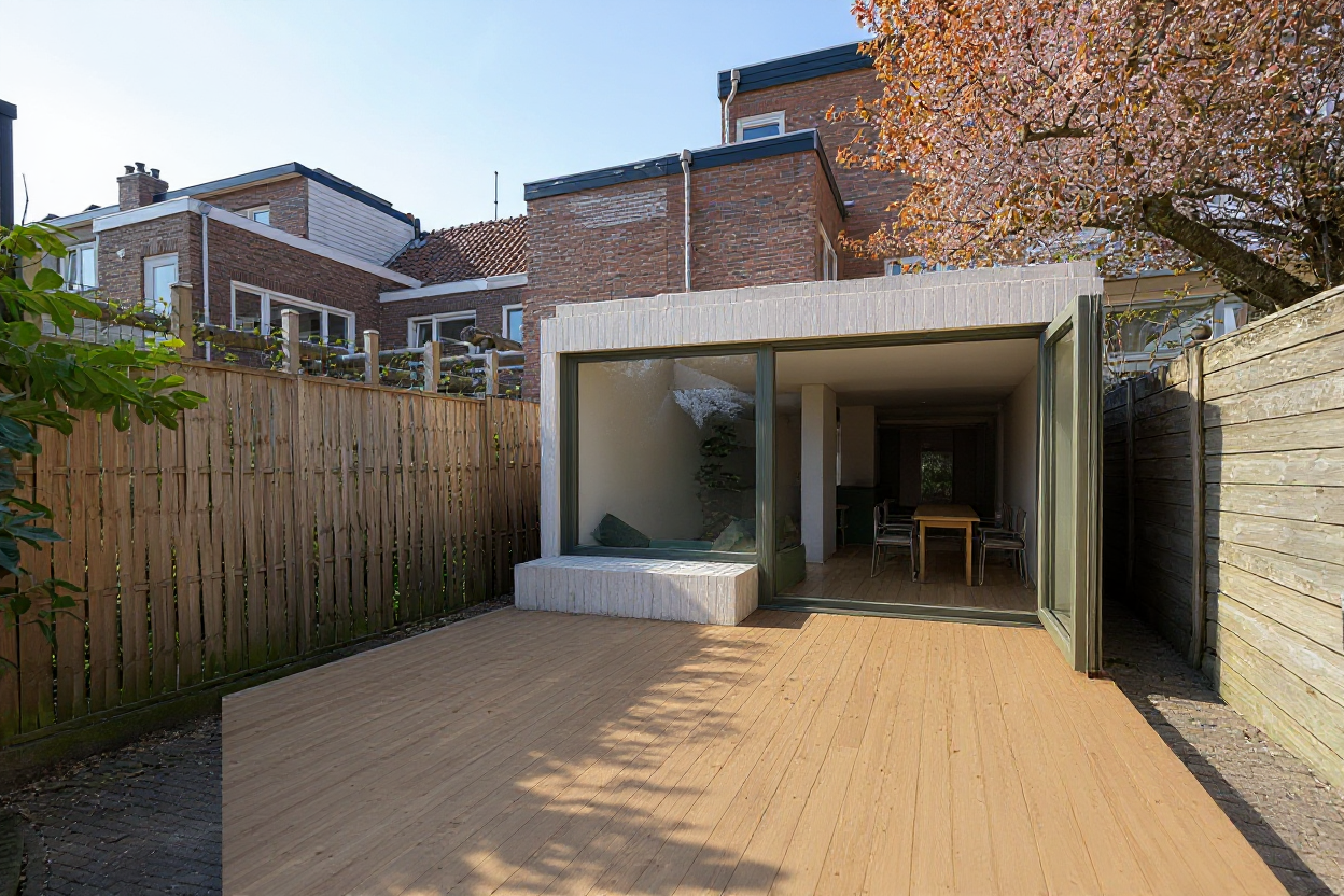 add on the face white brick texture window frame in ral 1019st more light indoors