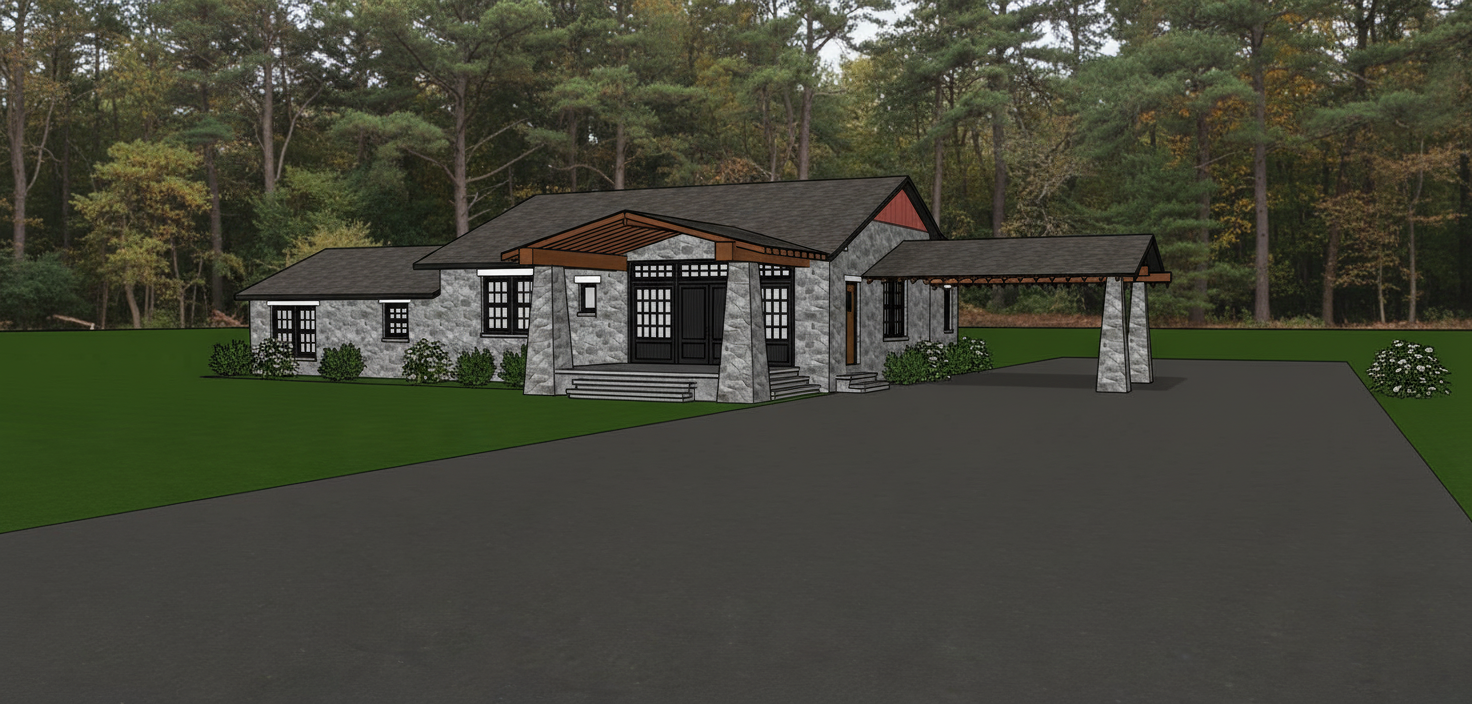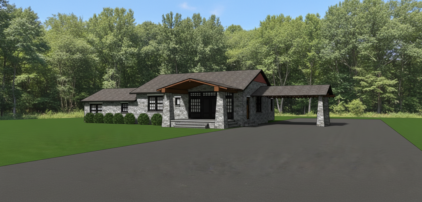 realistic rendering manicured lawn simple landscape wooded background
