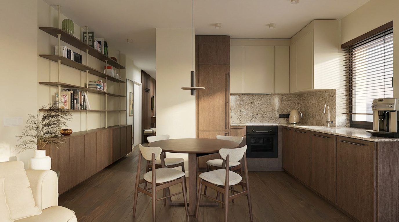 crea una imagen fotorealista a partir de este sketchup ten en cuenta que es una tienda de alimentacion los estantes y las cabinas de frigorificos deben estar iluminadas para la correcta presentacion de los productos crea la imagen de buena calidad que se vea real no modifiques texturas colores o formas quita el ruido y realza las texturas