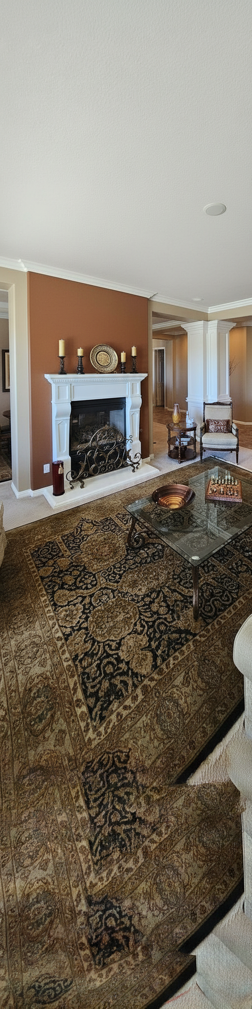 add same wall panels on doorway column to each doorway edge in image maintain same view colors textures and furniture in original image