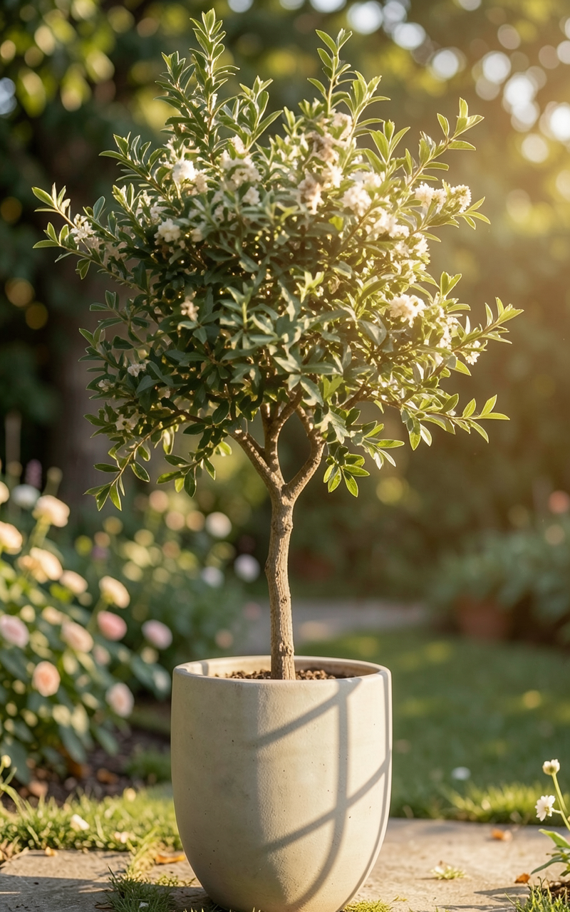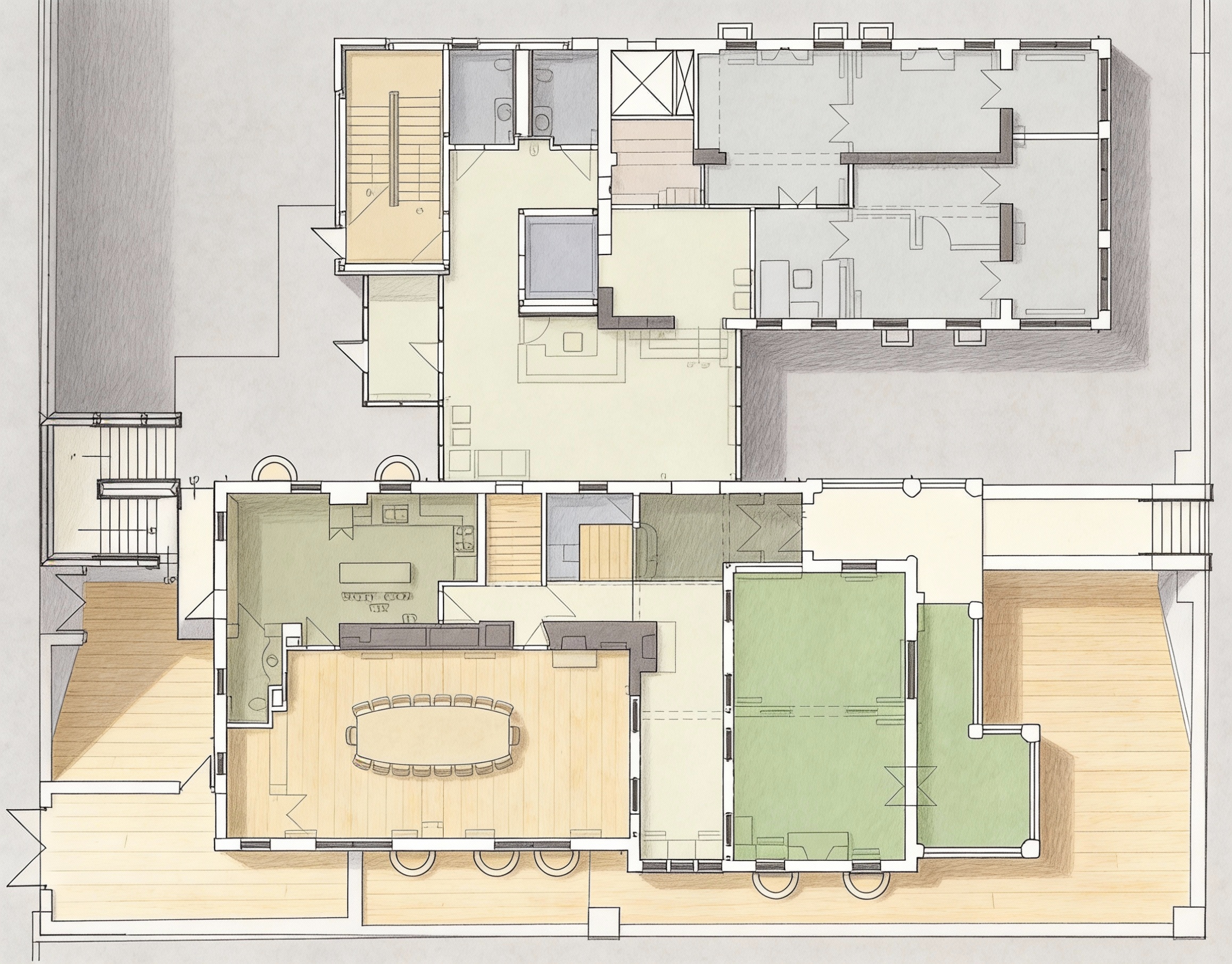 add some subtle cherry trees not concealed the red building and a person approaching the entrance of one of the houses