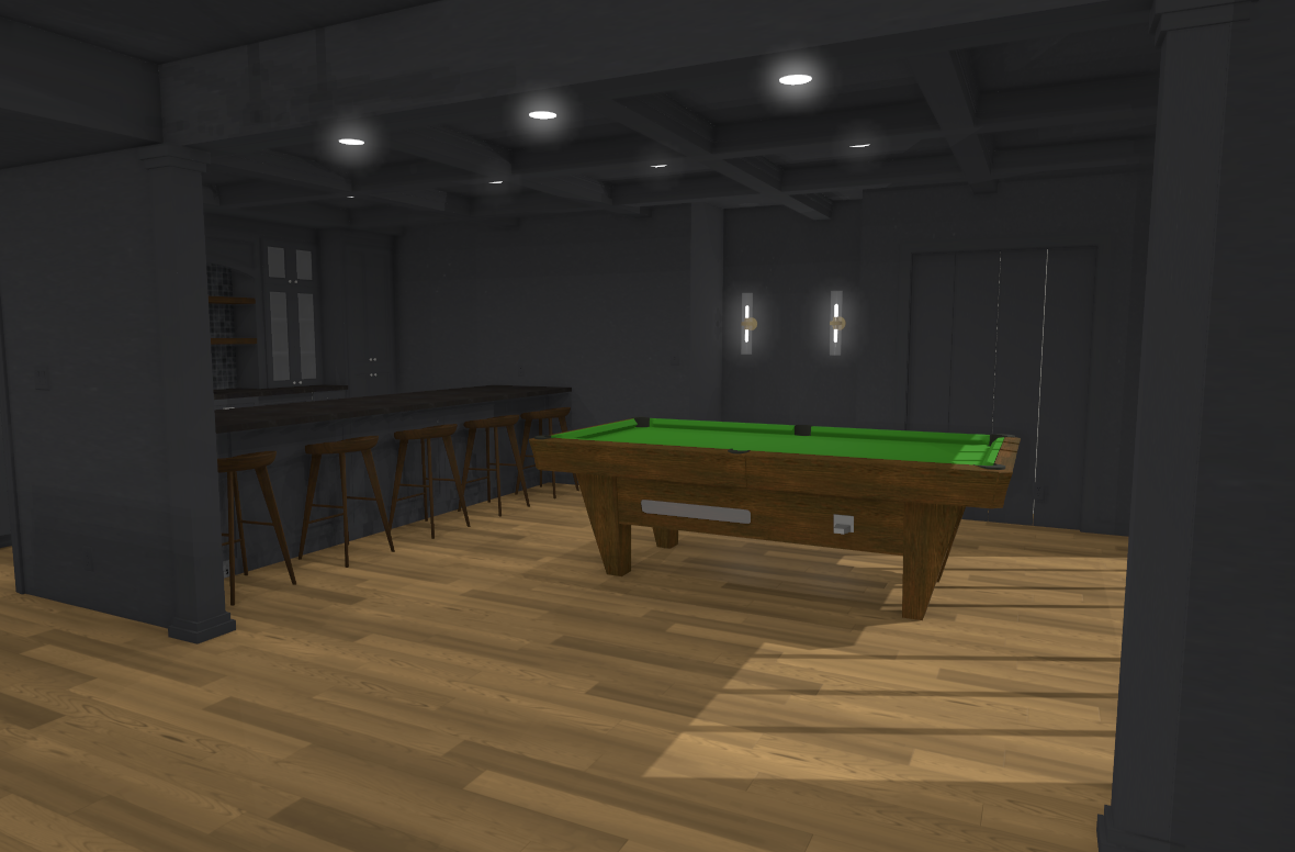 make this image look realistic show plenty of light in the render do not add any lighting to the cabinets on the left