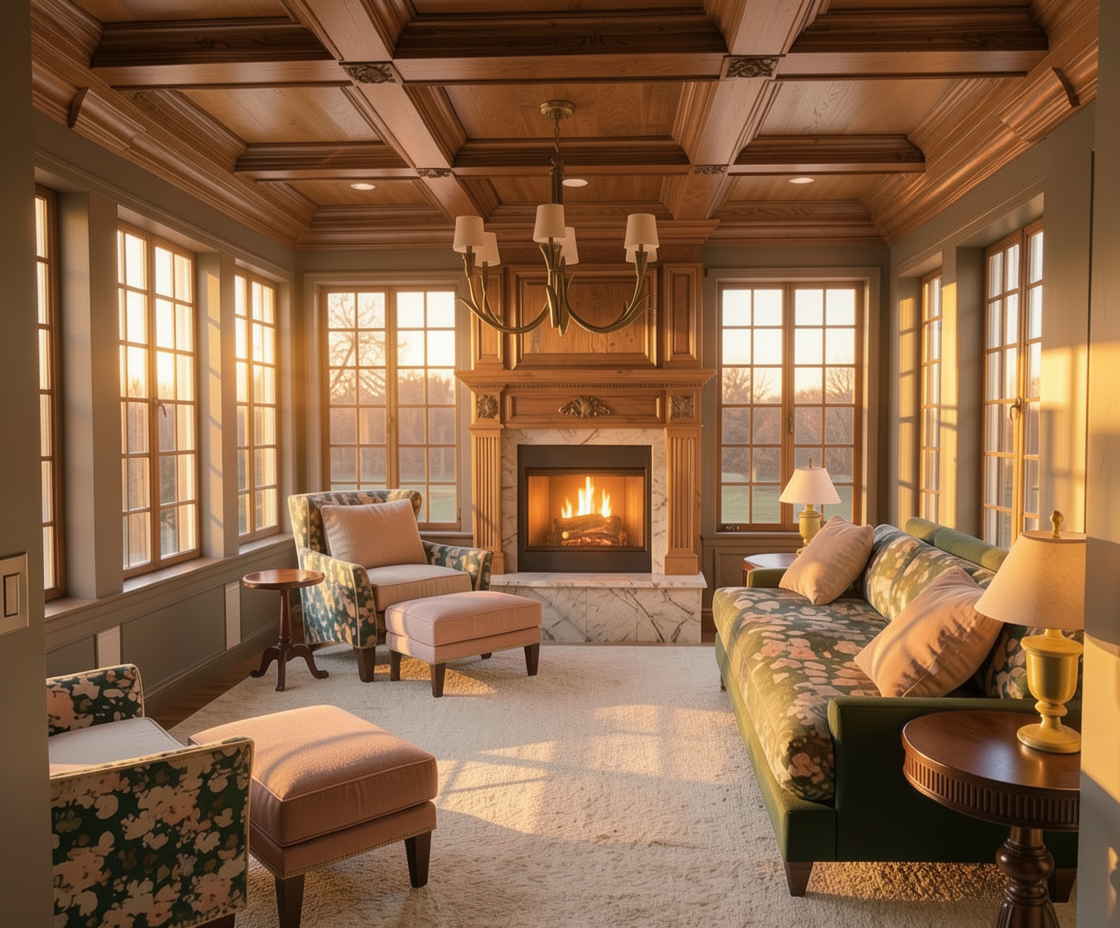 morning light natural wood cabinets gold mirrors gold sconces white shades light light green shower tile remove tub dark bronze iron shower frame towels on shelves