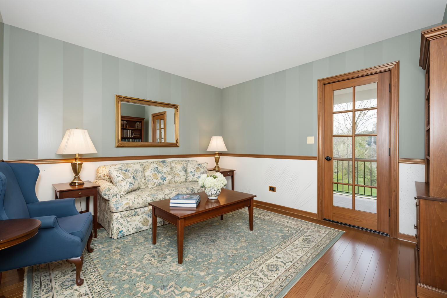 render a beautiful modern house with a black exterior and contrasting stone exterior showcasing large rectangular windows the garage doors are rich wood with dark metal handles surround with lush tall evergreens and vibrant green shrubs in the garden the driveway and walkway are light grey concrete with natural rocks modern garage doors in a darker tone the sky is bright clear blue creating a serene and elegant atmosphere