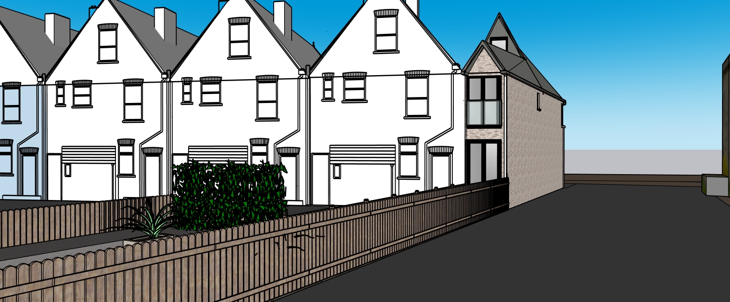 ultra realistic high resolution architectural photograph based exactly on the geometry and composition of uploaded sketchup image the main building must be focused with the clear lighting buff facing brickwork with the black frame metal roof covering and timber fence on the back standing seam metal remove any unwanted lines from the elevation all the materials in the sketch turn into realistic texture under soft light keep the environment very similar in the image make soft professional architectural style photography with no changing or adding any element highly detailed textures 4k resolution with wide angle view