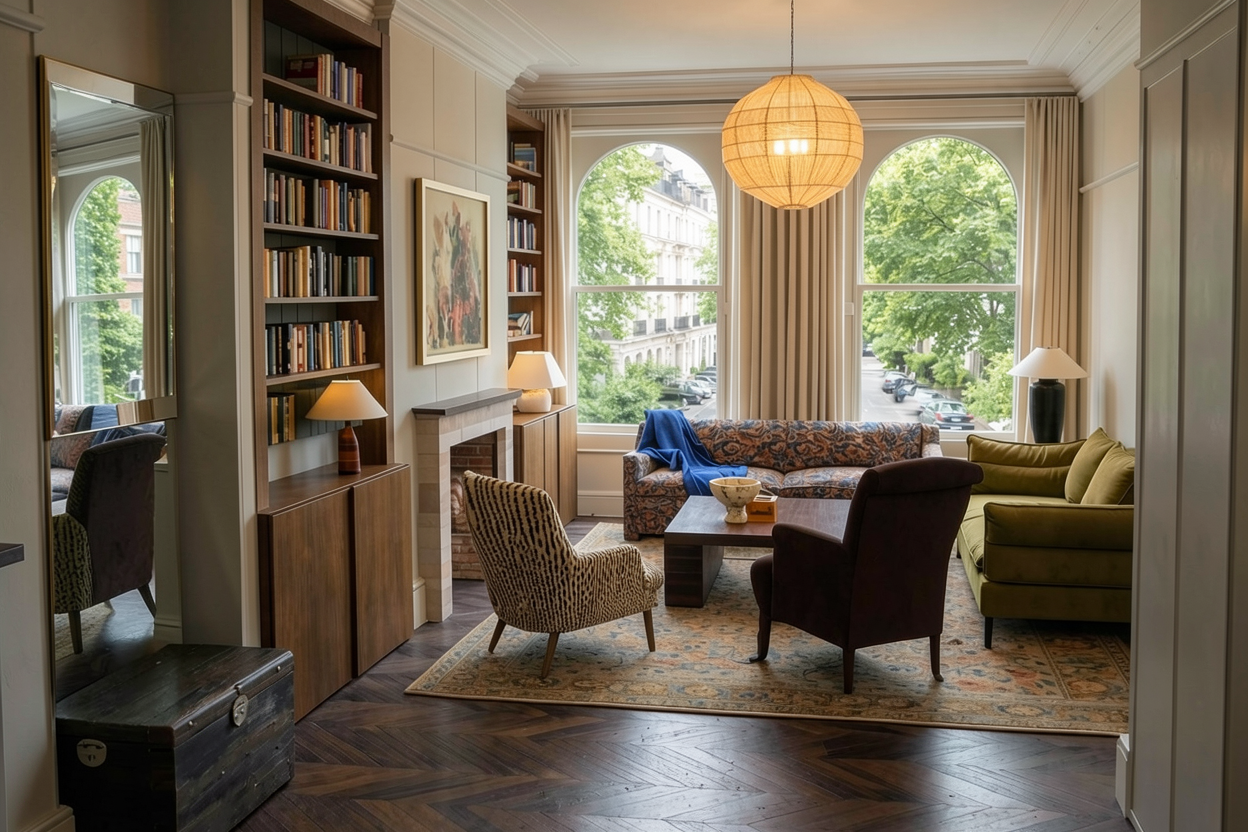 turn the light fitting off make it a soft light a overcast london day make the rug a wool texture