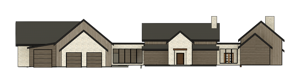 keep the structure of the house the exact same along with the materials make the 3 garage doors a fogged glass garage door add in windows to the front of the house