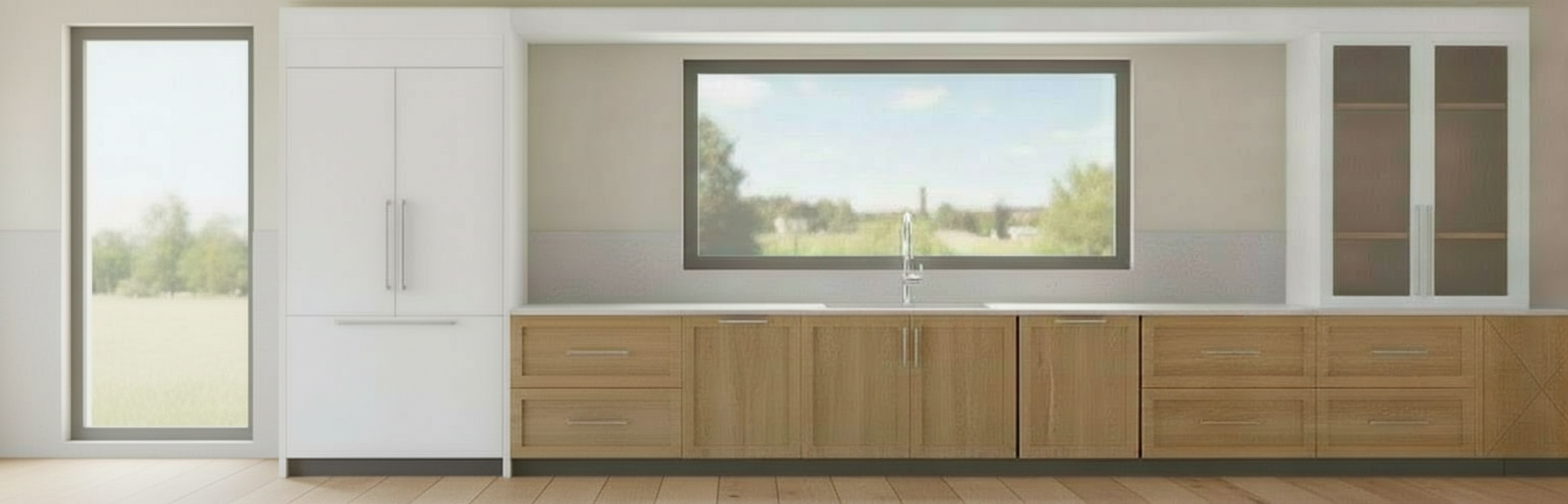 wood cabinets to be darker wood and white cabinets to be taupe
