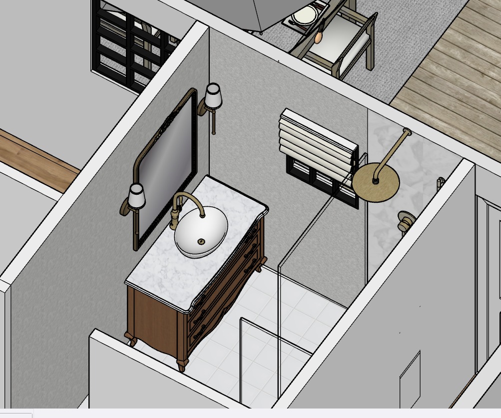add a nice subtle black and white wall paper in the background for the bathroom only all walls in the bathroom the rest remains u touched