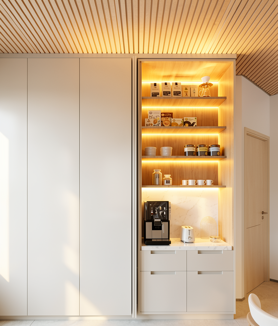change the image to a small seating area with three curved draws at the front of the cabinetry which are on the floor the outside two draws are smaller than the one in the middle and will be symmetrical from the middle the three draws will have the same three brass handle it should maintain the current view above the draws place a thick foam that follows the curve at the front of the seating area add three large scatter pillows on top of the foam