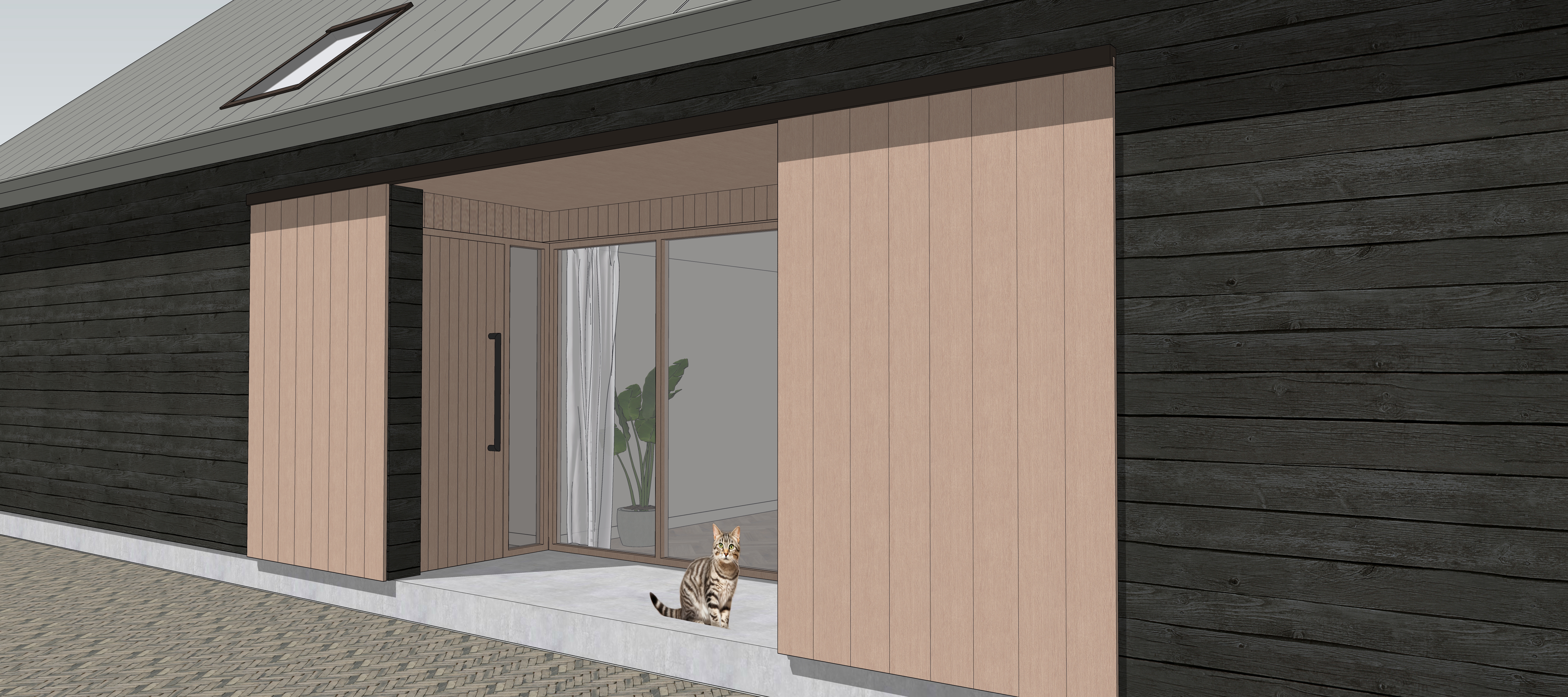 windows are in brown wood too make the wood lighter more grey brown vertical wood is more grey