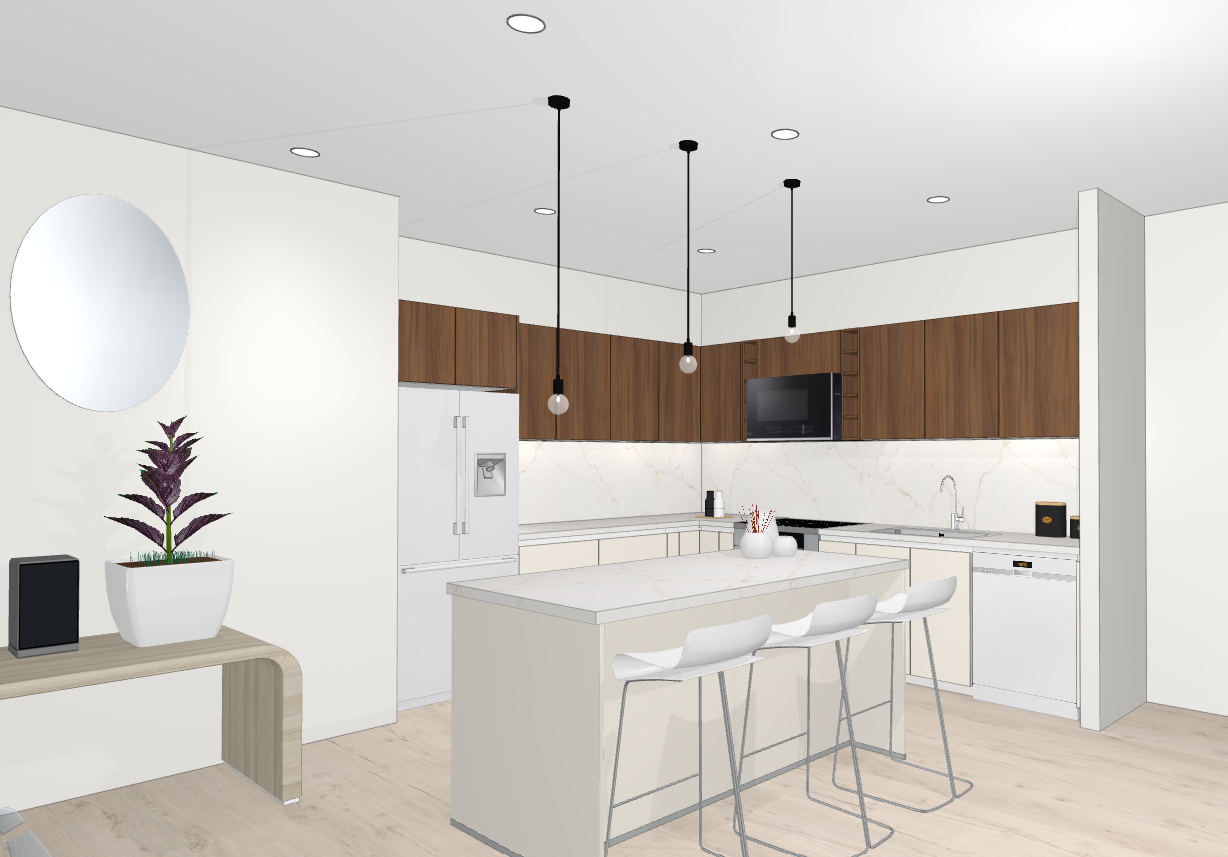 elegant kitchen dark walnut mat wall units and magnolia gloss fridge white